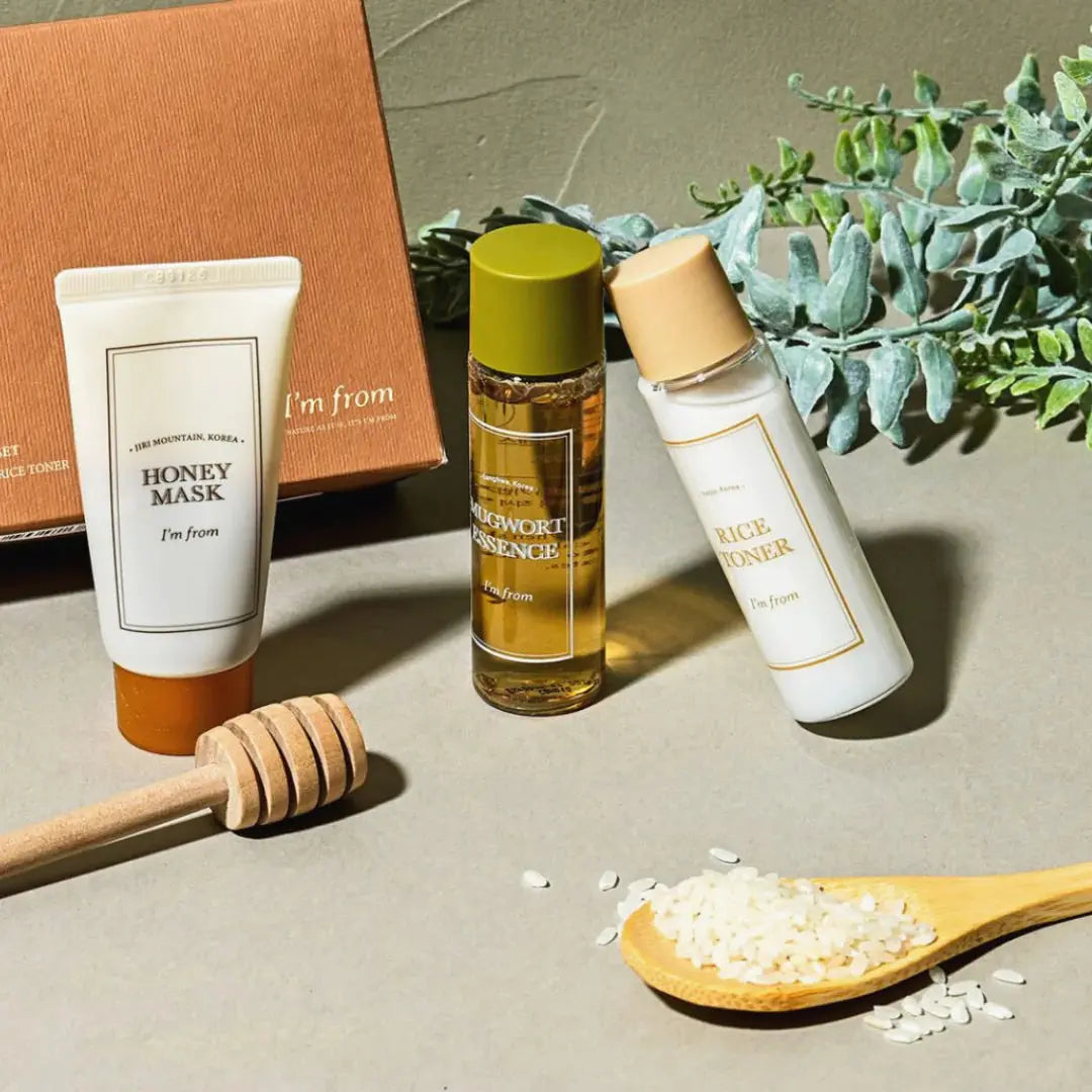 Rice Toner: Oryza Sativa (Rice) Extract (77.78%), Methylpropanediol, Triethylhexanoin, Hydrogenated Poly(C6-14 Olefin), Niacinamide, Pentylene Glycol,Portulaca Oleracea Extract, Oryza Sativa (Rice) Bran Extract (0.1%), Ulmus Davidiana Root Extract, Amaranthus Caudatus Seed Extract,Hydrogenated Lecithin, Water, Polyglyceryl-10 Myristate, Butylene Glycol, Adenosine, Cellulose Gum, Ethylhexylglycerin, 1,2-Hexanediol