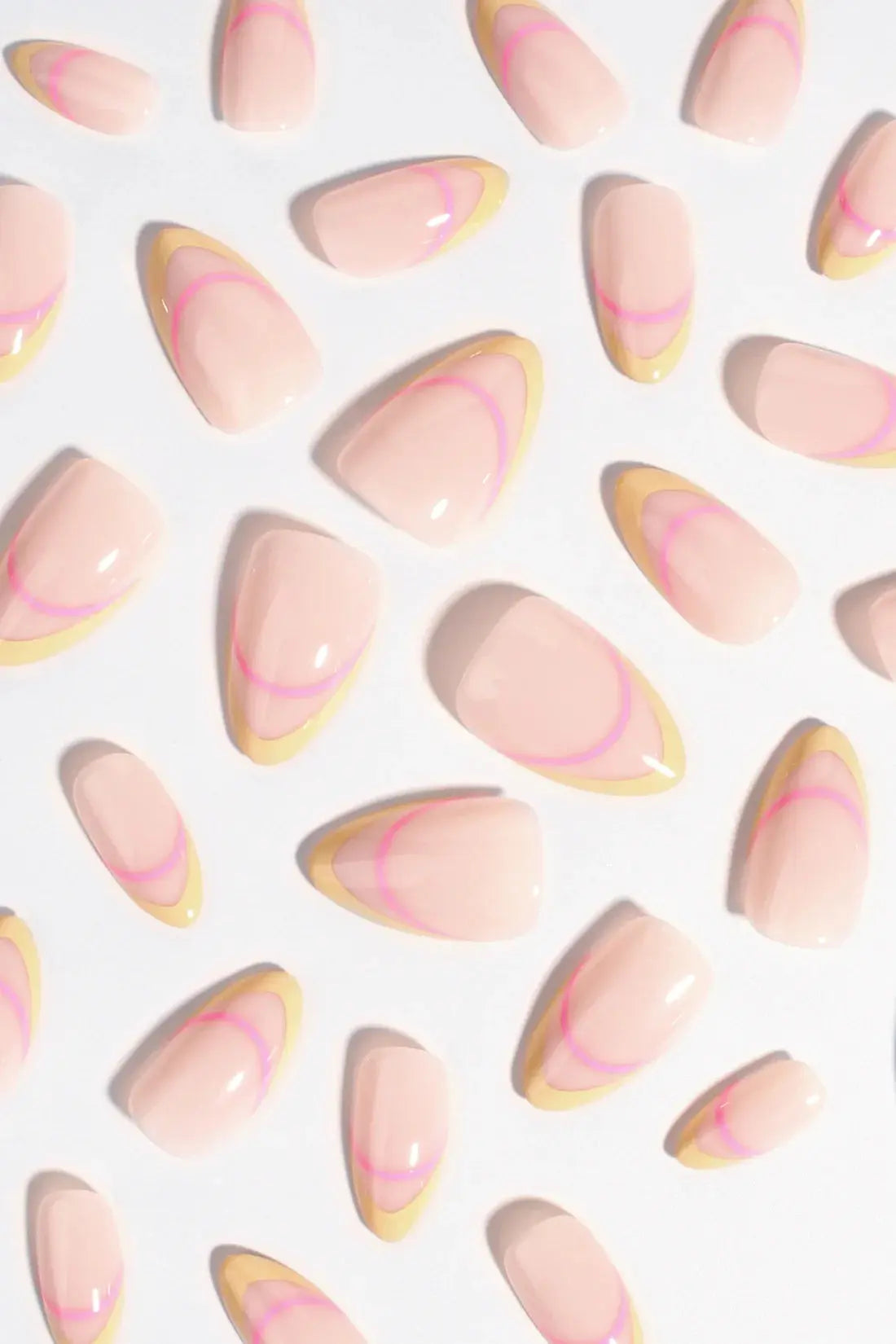The Bonmuz Press-On Nails Tango Twist are an energetic mix of vibrant pink and electrifying yellow that instantly creates a playful, eye-catching vibe. The thin line along the edge adds a subtle, refined detail that gives the design an extra touch of finesse.