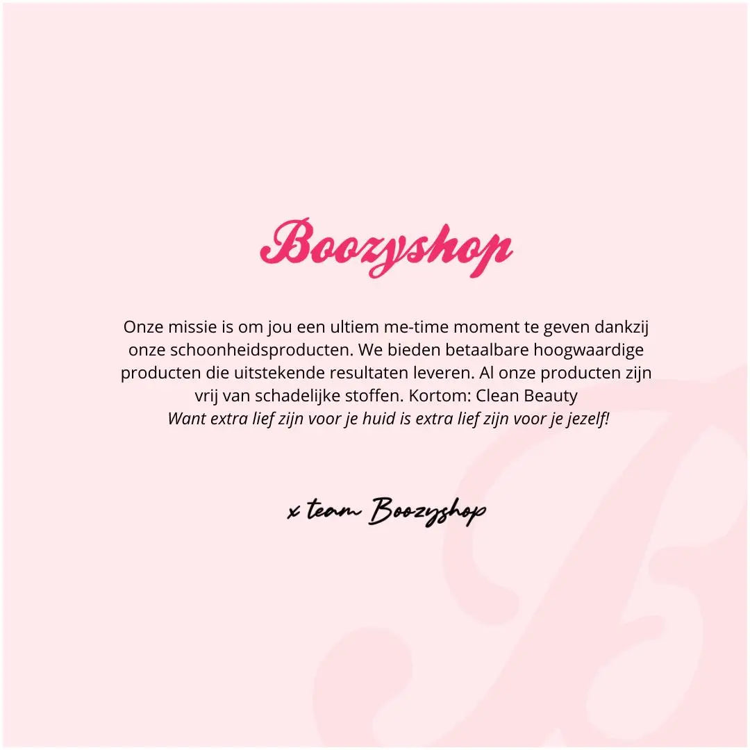 At Boozyshop we believe that beauty should be accessible to everyone, regardless of gender, skin color or identity. We are proud that all our products contribute to a radiant and confident appearance. We strongly support honest beauty products, made from natural ingredients and free from controversial ingredients. Our products offer high quality yet are affordable, making us the ideal solution for anyone who wants to achieve a beautiful appearance with a perfect finish.