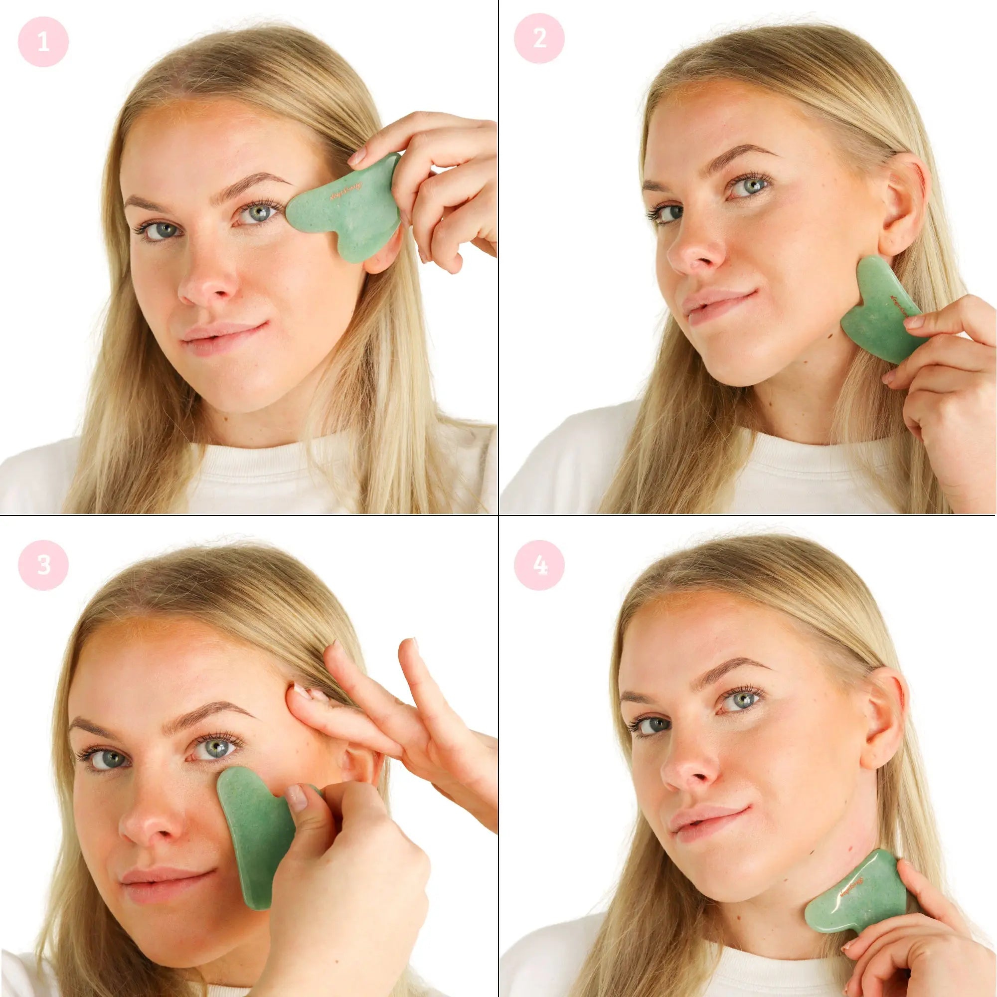 The Boozyshop Jade Gua Sha Tool is a massage tool made of jade stone which is known for its lifting properties. This tool helps you to massage your face, stimulates the absorption of facial products and gives a lifting effect. The V-shape of this tool is ideal for massaging and soothing the cheekbones and jawline. You can also use this Jade Gua Sha to apply your favorite serums or lotions.