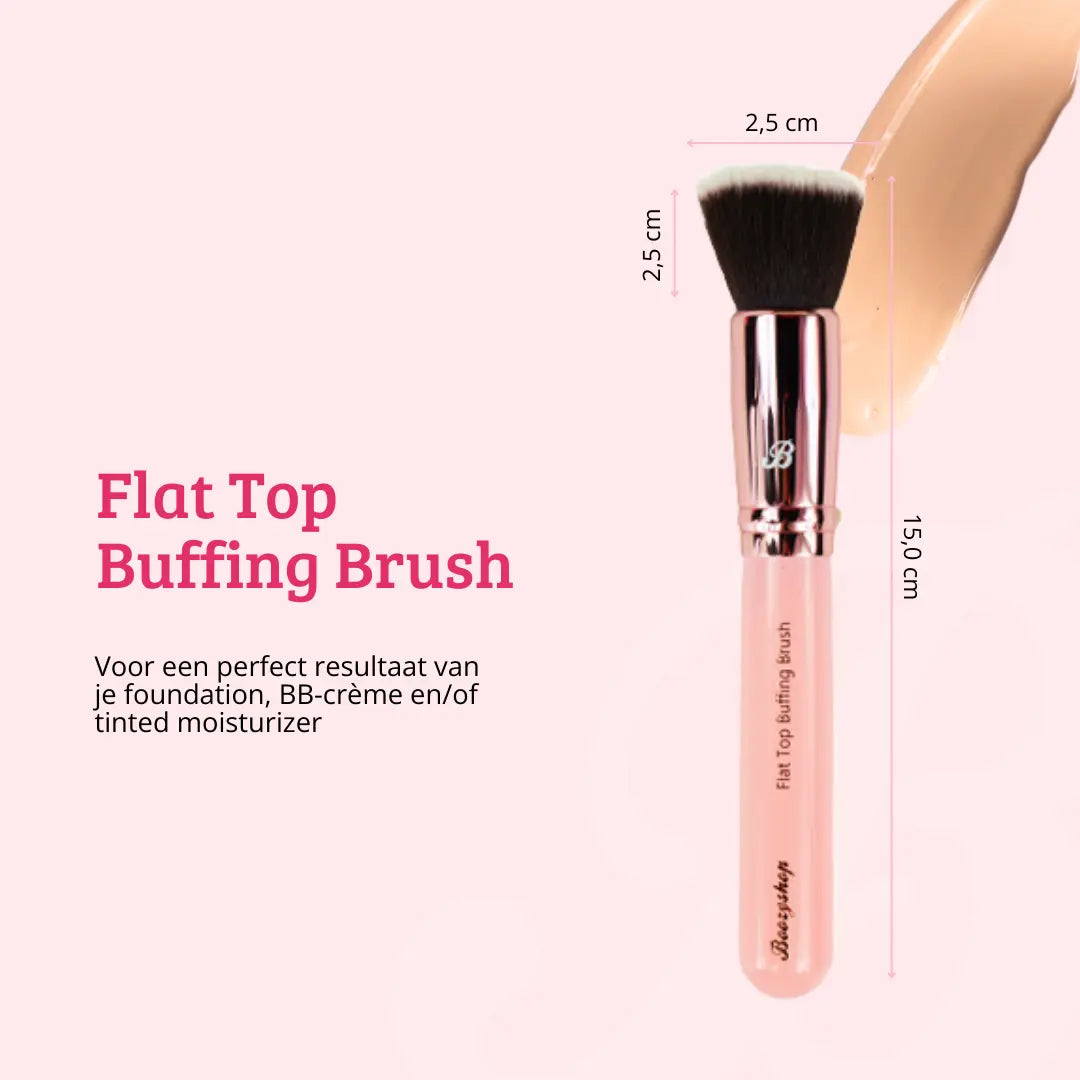 The Boozyshop Pink & Rose Gold Flat Top Buffing Brush is the ultimate tool for applying liquid foundation. This brush allows for quick and easy application and is perfect for blending. Build up the coverage of your foundation by applying multiple layers as needed. Thanks to the flat, precisely cut bristles, you’ll achieve a natural airbrushed effect effortlessly.