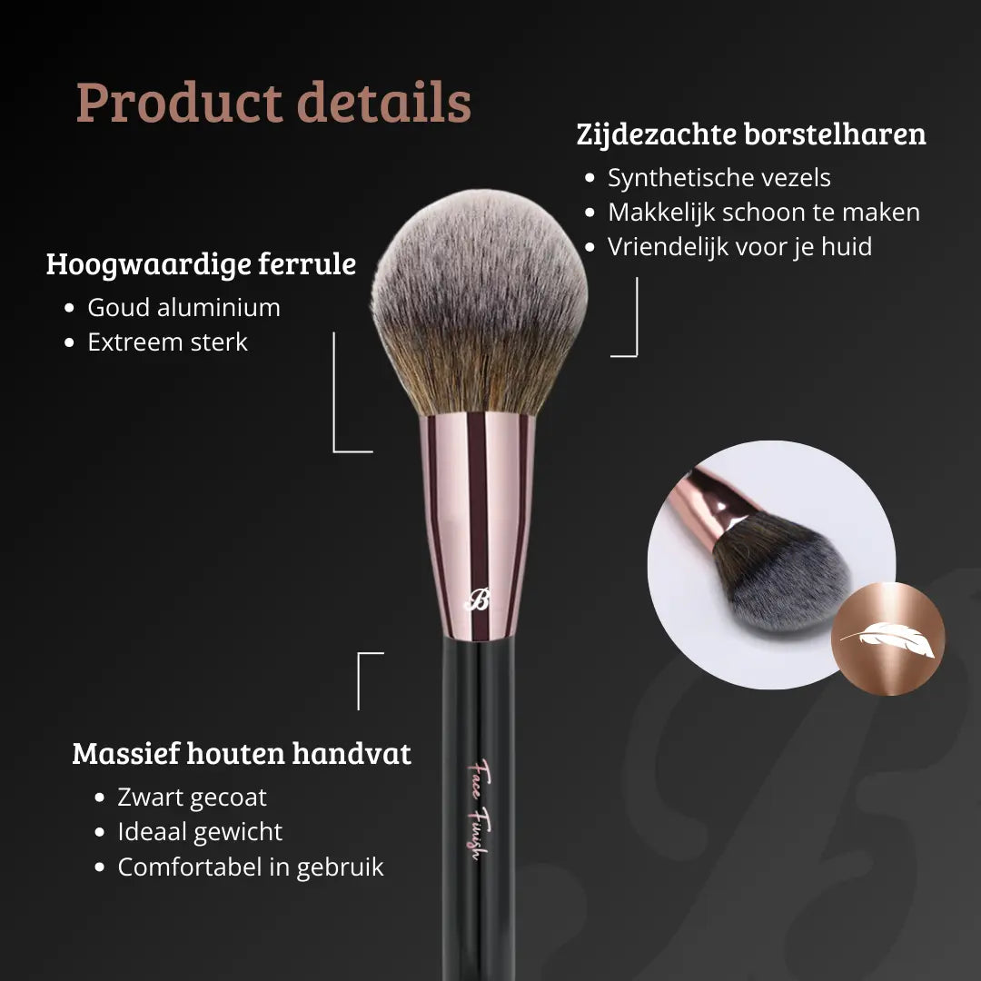 The Boozyshop Ultimate Pro UP12 Face Finish Brush is the ultimate makeup brush for professionally applying all types of makeup powders. With this brush, you have full control over quick and easy application and blending of both loose and pressed powders. Thanks to its round and precisely cut bristles, you apply your favorite powder evenly and blend it flawlessly for a natural finish.