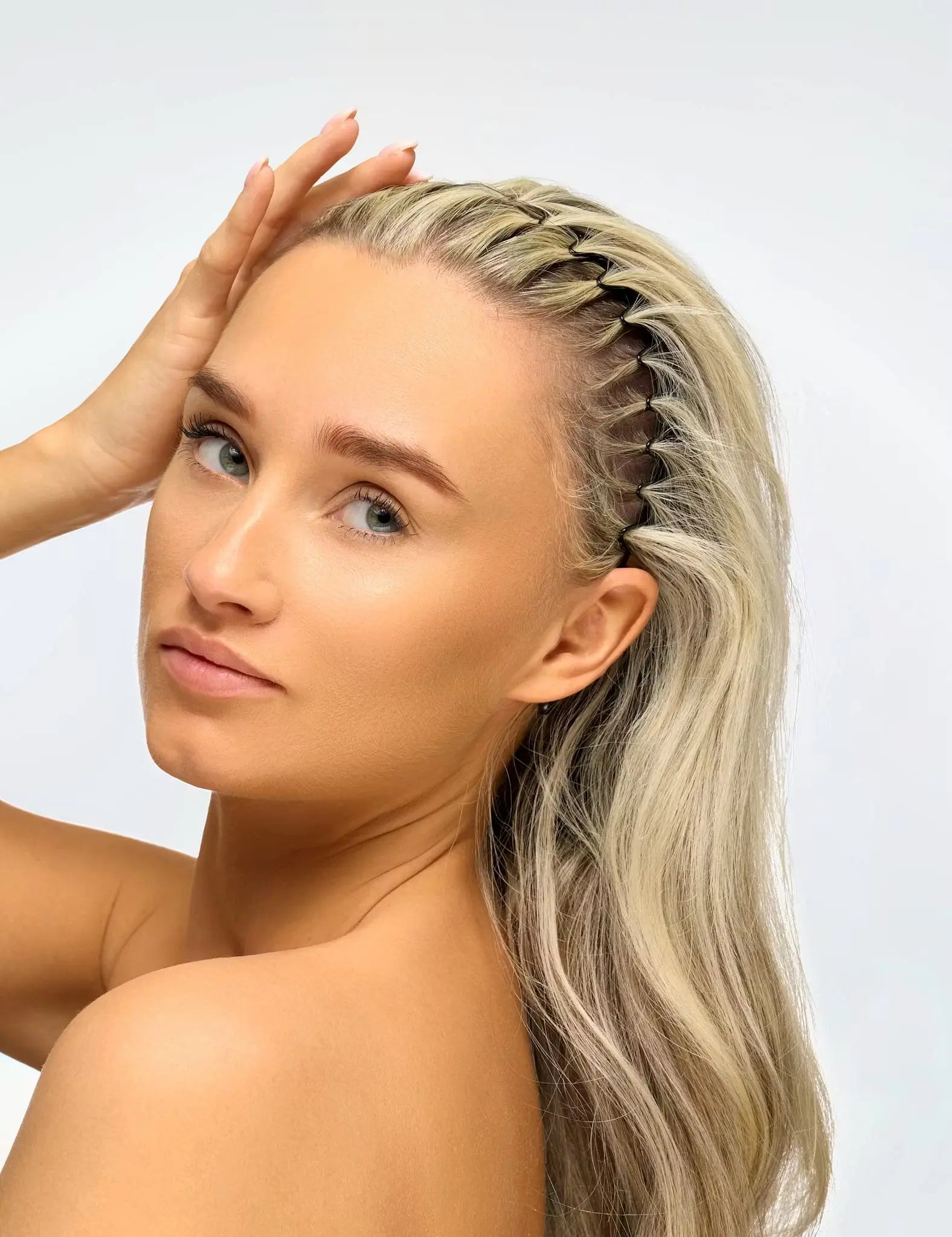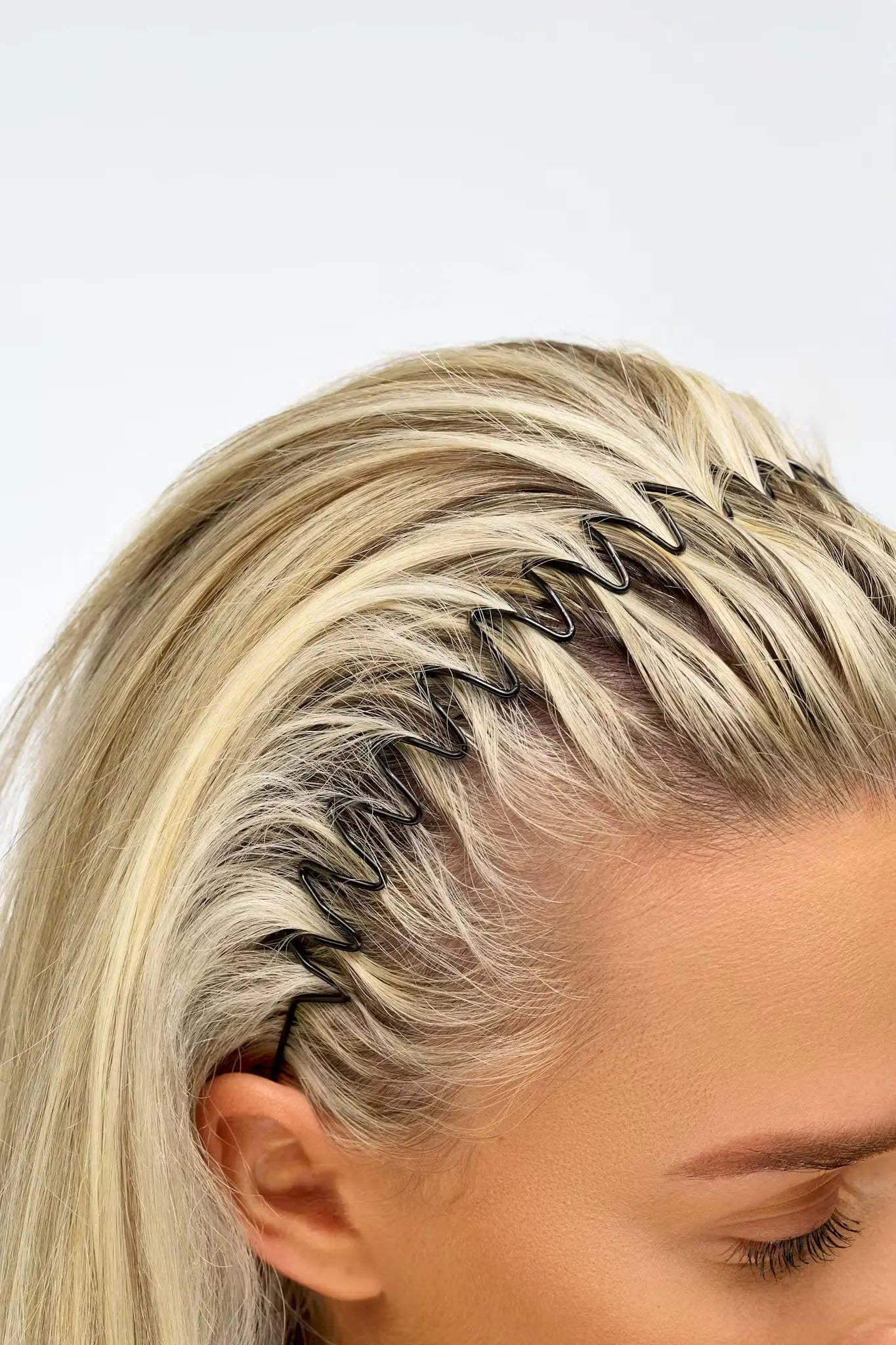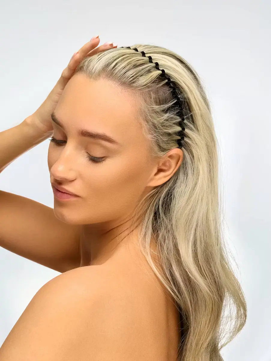 - Place the headband on your head with the teeth facing towards your scalp.