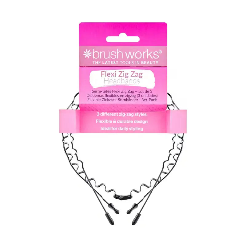 The Brushworks Flexi Zig Zag Headbands Set is your go to if you want to keep your hair stylish and practical out of your face. These flexible black headbands combine comfort with a timeless design, making them perfect for your daily routine or a quick touch up to your look.