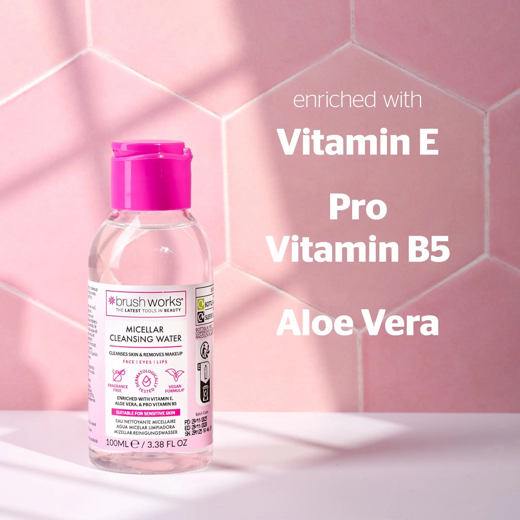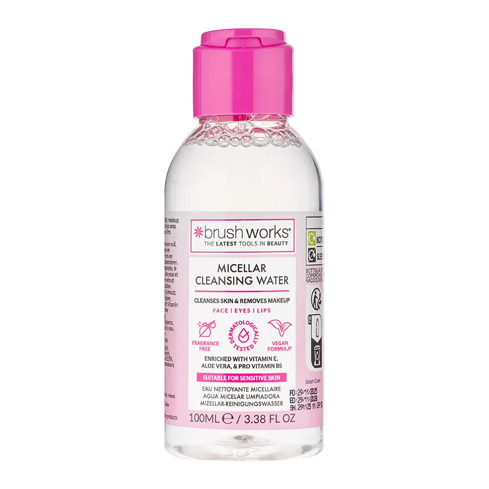 The Brushworks Micellar Cleansing Water 100 ml. is your perfect travel buddy for fresh, clean skin wherever you are. This handy travel size fits effortlessly into your handbag, gym bag or carry on luggage and contains the same gentle, effective formula you are used to.