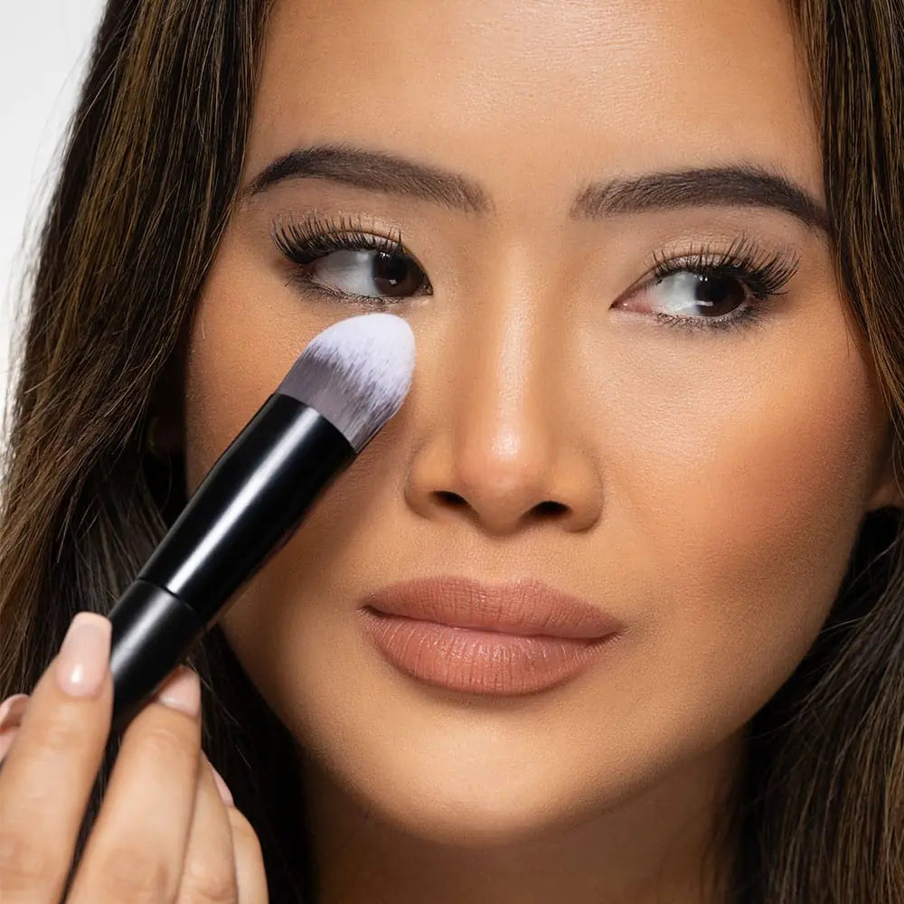 - Use short, circular motions to buff the product into the skin for an even base.