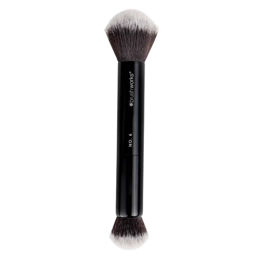 The Brushworks No. 6 Double Ended Powder and Buff Brush is the multitasker that makes your make up routine easier. Thanks to its double ended design, you get a powder brush and a buffing brush in one, perfect for a quick touch up or a complete base.