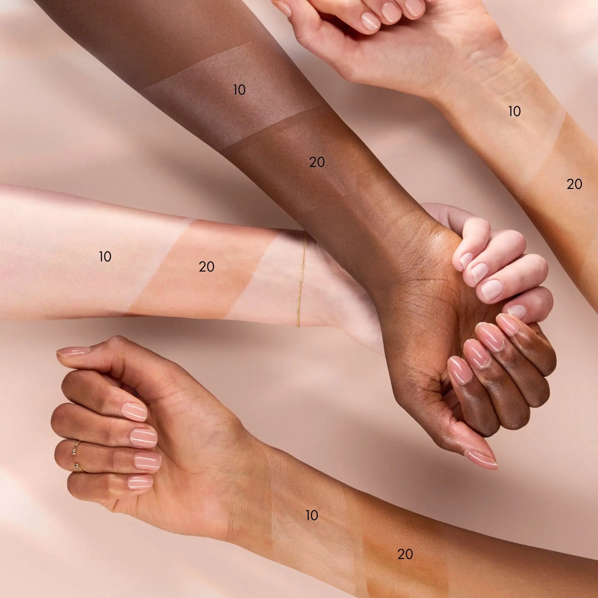 Aqua (Water), Dimethicone, Polysilicone-11, Glycerin, Ethylhexyl Methoxycinnamate, Niacinamide, Butylene Glycol, Butyl Methoxydibenzoylmethane, Octocrylene, Bis-ethylhexyloxyphenol Methoxyphenyl Triazine, Zingiber Officinale (Ginger) Root Extract, Tocopheryl Acetate, Polyacrylamide, C13-14 Isoparaffin (C13-14 Isoalkane), Isohexadecane, Ppg-26-buteth-26, Synthetic Fluorphlogopite, Mica, Polyglyceryl-4 Isostearate, Peg-40 Hydrogenated Castor Oil, Cetyl Peg/ppg-10/1 Dimethicone, Ethylhexylglycerin, Ammonium Polyacryloyldimethyl Taurate, Hexyl Laurate, Disodium Edta, Laureth-7, Laureth-12, Polysorbate 80, Bht, Polysorbate 20, Triethoxycaprylylsilane, Phenoxyethanol, Potassium Sorbate, Parfum (Fragrance), Citronellol, Linalool, Citral, Ci 77491, Ci 77492, Ci 77499 (Iron Oxides), Ci 77891 (Titanium Dioxide).