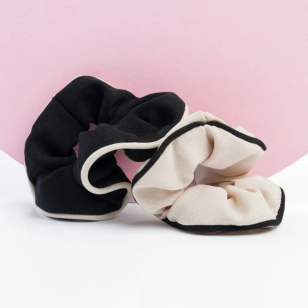 The classic black and cream shades match every outfit and make these scrunchies a timeless addition to your hair accessories. Whether you have a casual day or are going out for the evening, these scrunchies give your look that little extra.