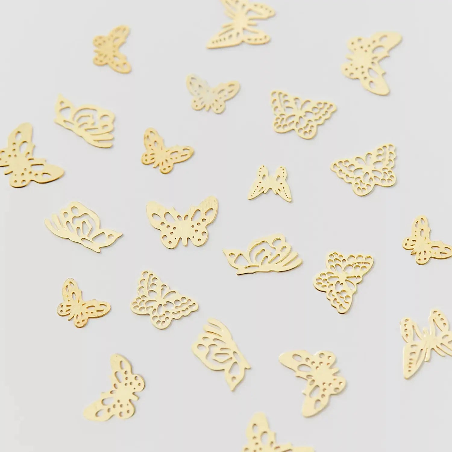 The Daily Charme Delicate Butterfly Stud Gold is the ultimate accent for your dreamy butterfly nail art! These ultra-thin gold butterfly studs are subtle, elegant, and add a soft, luxurious touch to any nail look. Perfect for spring styles, weddings, or whenever you're in the mood for something extra without going over the top.