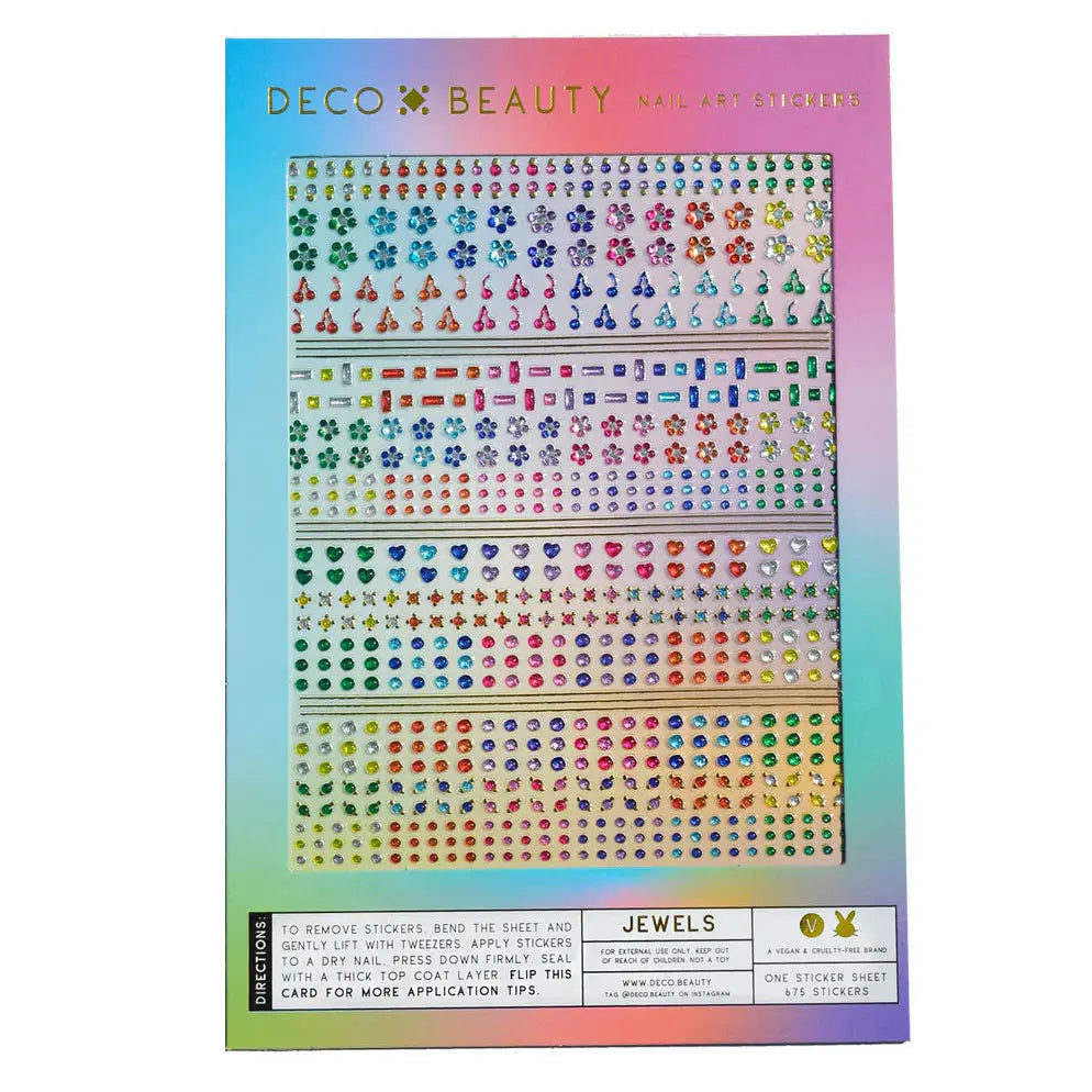 The Deco Beauty Nail Art Stickers Jewels give your manicure a luxurious upgrade with mini jewels that look like real nail gems. These tiny jewels can easily be lifted from the sheet with tweezers and placed exactly where you want for a subtle or more eye catching effect.