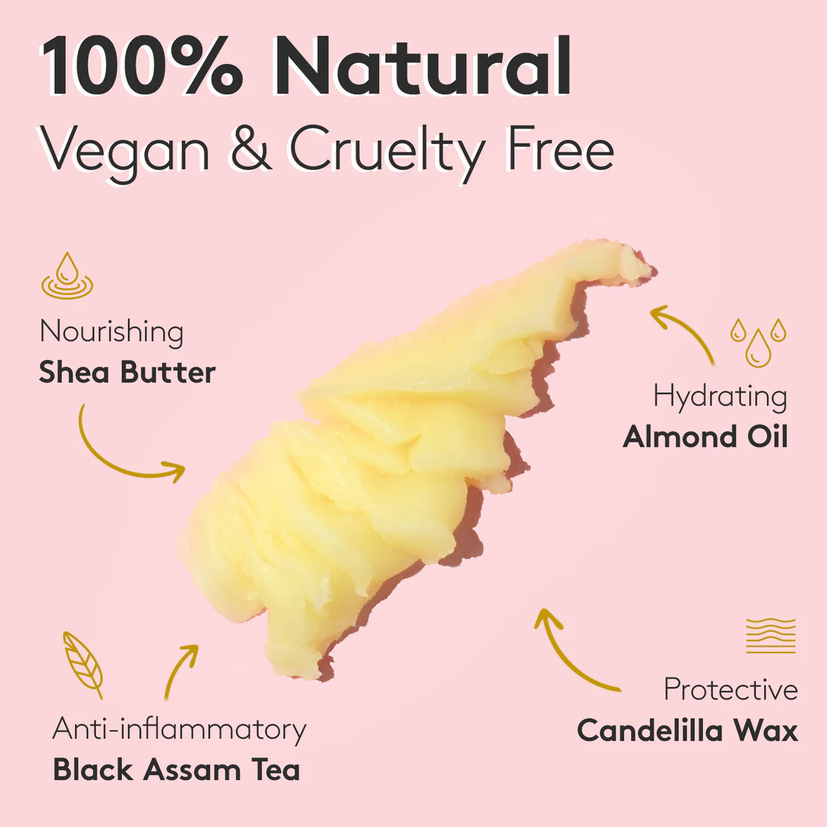 Butyrospermum Parkii (Shea) Butter, Prunus Amygdalus Dulcis (Sweet Almond) Oil, Candelilla Cera (Candelilla Wax), Camellia Sinensis Leaf (Black Assam Tea), Fragrance, Limonene, Citral.