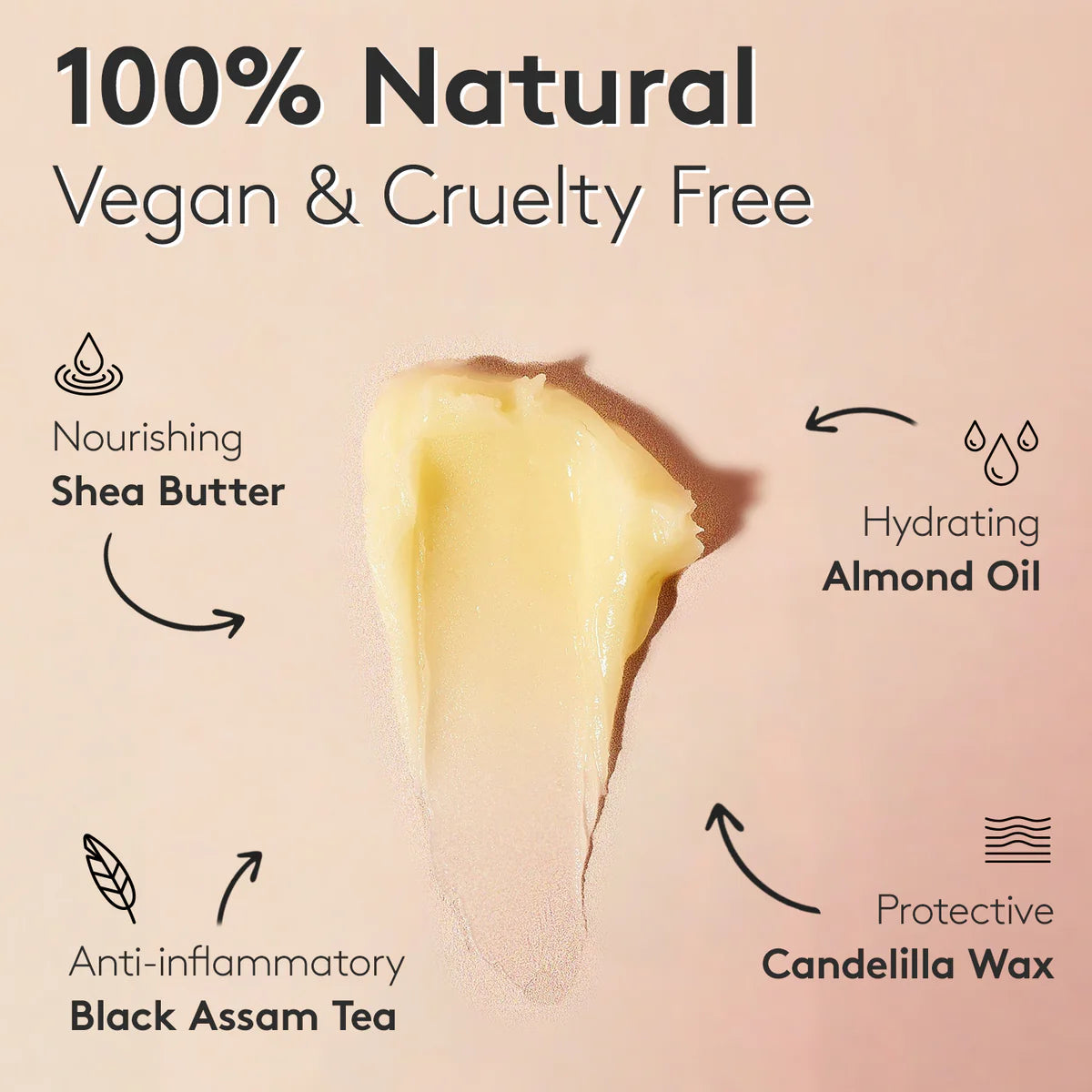 Butyrospermum Parkii (Shea) Butter, Prunus Amygdalus Dulcis (Sweet Almond) Oil, Candelilla Cera (Candelilla Wax), Camellia Sinensis Leaf (Black Assam Tea).