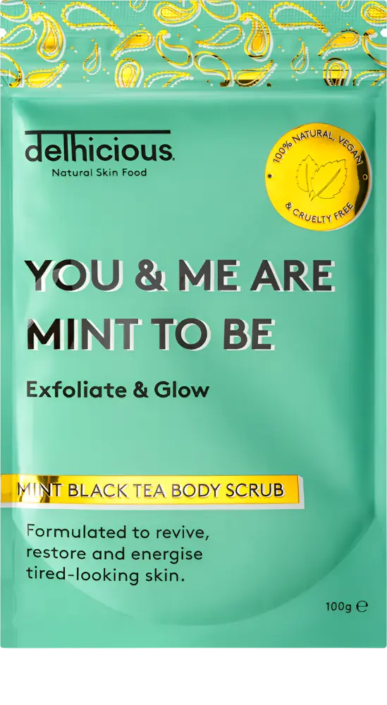 The Delhicious Mint Black Tea Body Scrub is a refreshing, minty scrub that instantly leaves your skin softer and smoother! This natural exfoliant combines scrubbing ingredients with antioxidants from Indian Black Assam Tea and calming peppermint oil. Perfect for skin that’s dry, dull, or prone to keratosis pilaris.