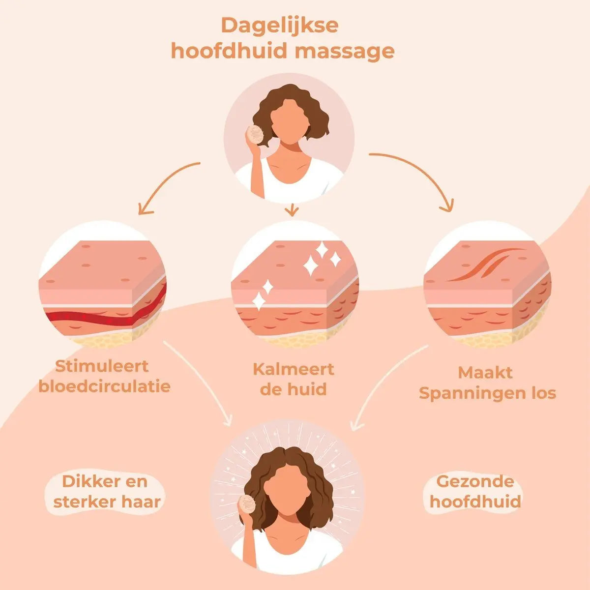 A scalp massage with the Destined brush improves your hair health and offers deep relaxation. Regular massage can reduce stress and soothe an itchy scalp. Add a few drops of essential oil for extra relaxation.