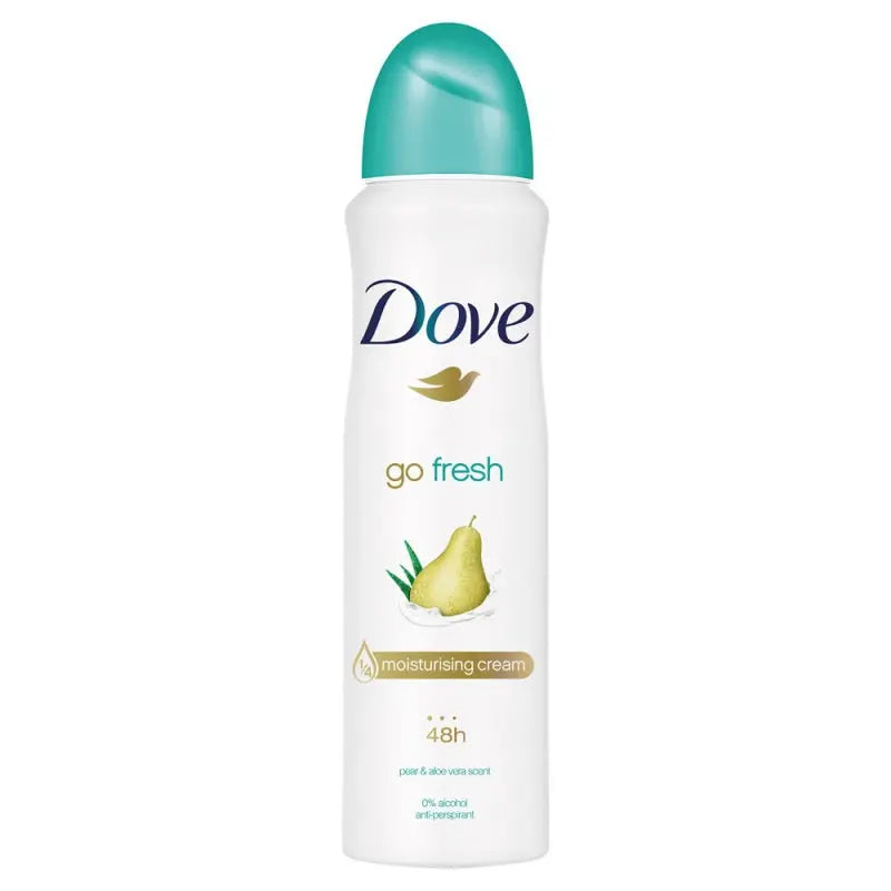 The Dove Deodorant Spray Go Fresh Pear & Aloe Vera is your fresh start to the day: and keeps that feeling going for hours. This triple-action antiperspirant protects you from sweat, hydrates your skin, and leaves your underarms noticeably softer and smoother. The combination of soothing aloe vera and the light, sweet scent of juicy pear gives a refreshing boost, whether you're just out of the shower or on the go.