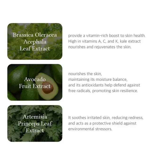 Water, Glycerin, Dipropylene Glycol, Cetearyl Alcohol, Caprylic/capric Triglyceride, Methyl Trimethicone, Hydrogenated Polydecene, 1,2-hexanediol, Phenyl Trimethicone, Vegetable Oil, Dimethicone/vinyl Dimethicone Crosspolymer, Glyceryl Stearate Se, Coptis Japonica Root Extract, Artemisia Princeps Leaf Extract, Persea Gratissima (Avocado) Fruit Extract, Brassica Oleracea Acephala Leaf Extract, Hydrolyzed Gardenia Florida Extract, Paeonia Albiflora Flower Extract, Hydrogenated Lecithin, Sodium Hyaluronate, Cetearyl Olivate, Palmitic Acid, Sorbitan Olivate, C12-16 Alcohols, Behenyl Alcohol, Stearic Acid, Microcrystalline Cellulose, Cetearyl Glucoside, Butylene Glycol, Ethylhexylglycerin, Ammonium Acryloyldimethyltaurate/vp Copolymer, Polyglyceryl-10 Myristate, Glyceryl Polymethacrylate, Cellulose Gum, Cholesterol, Ceramide Np, Disodium Edta, Glyceryl Stearate, Methylpropanediol, Maltodextrin, Guaiaz ulene, Ceramide As , Ceramide AP, Arginine, Carbomer, Ceramide NS, Ceramide NG, Tocopherol, Dimethylsilanol Hyaluronate, Hydrolyzed Sodium Hyaluronate, Hydrolyzed Hyaluronic Hyaluronic, Hyaluronate, Hyaluronic Onium Hyaluronate, Sodium Hyaluronate Dimethylsilanol, Sodium Acetylated Hyaluronate, Ceramide Eop
