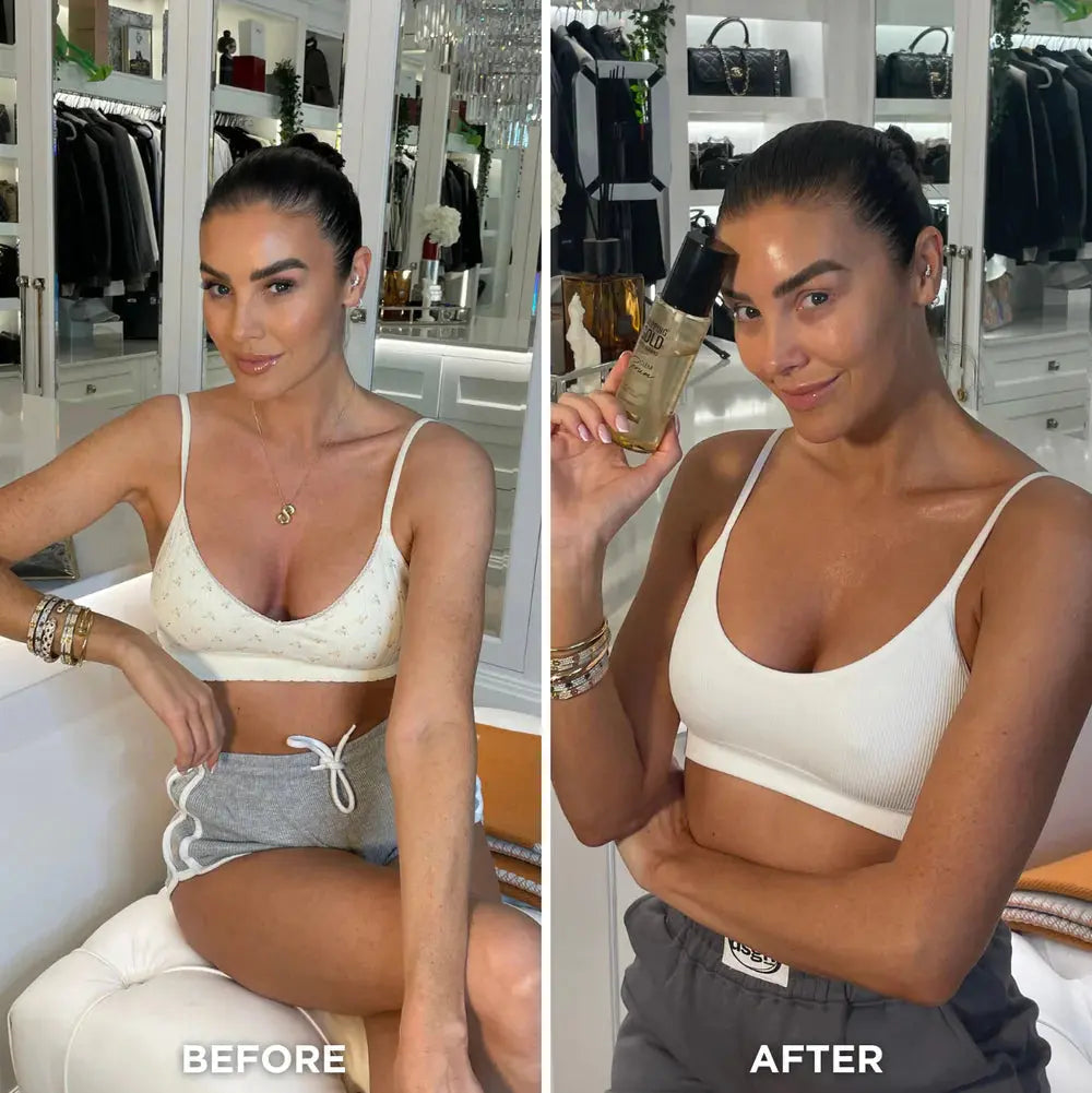 The Dripping Gold Luxury Tanning Clear Serum Dark is your glow-up without a guide color. This transparent body tanning serum is developed with Dripping Gold’s Advanced Pigment Delivery System for fast release of tanning actives and a deep, even bronzed result.