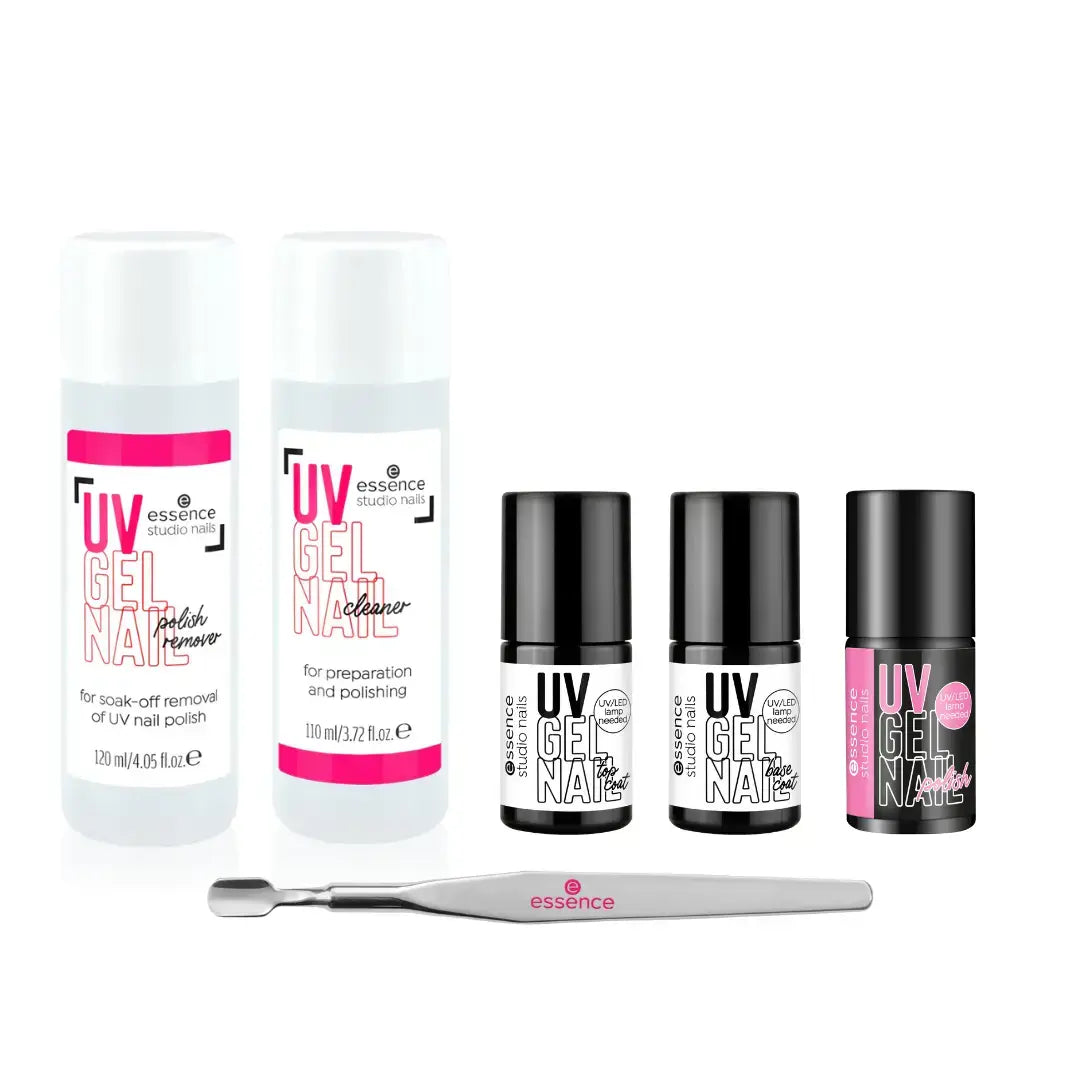 The Essence Starter Set Studio Nails UV Gel Polish is your perfect starting point for a salon-quality gel manicure right at home. This convenient starter kit includes everything you need to get started creating strong, shiny, and long-lasting gel nails.