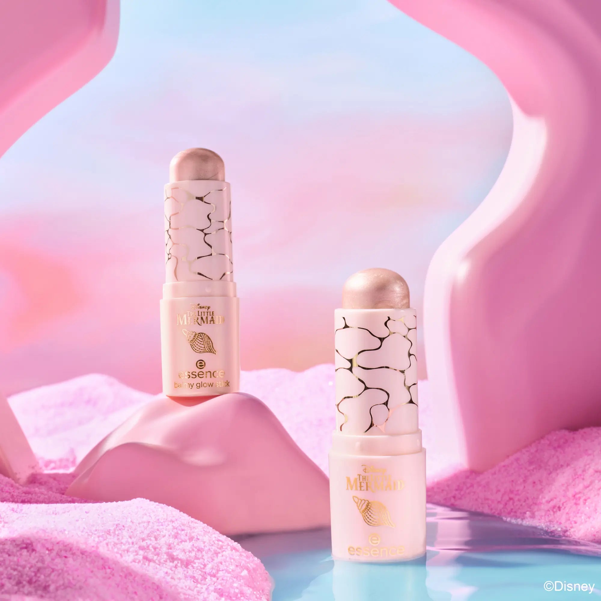 The Essence X Disney The Little Mermaid Balmy Glow Stick Watch Me Shine gives your skin a beautiful radiant glow. This champagne colored highlighter with a pearlescent shine makes your complexion glow with a fresh ocean inspired shimmer.