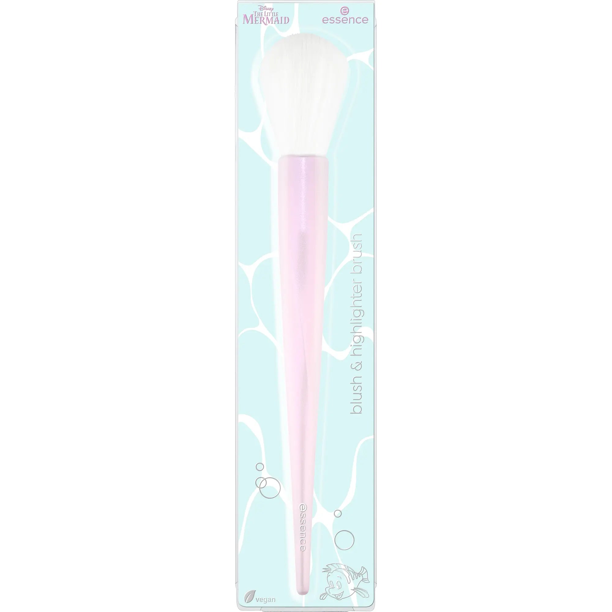 The Essence X Disney The Little Mermaid Blush & Highlighter Brush Makin' Waves adds a magical glow to your makeup routine. With its pearlescent handle and soft white bristles, you can effortlessly apply blush and highlighter for a fresh radiant look.