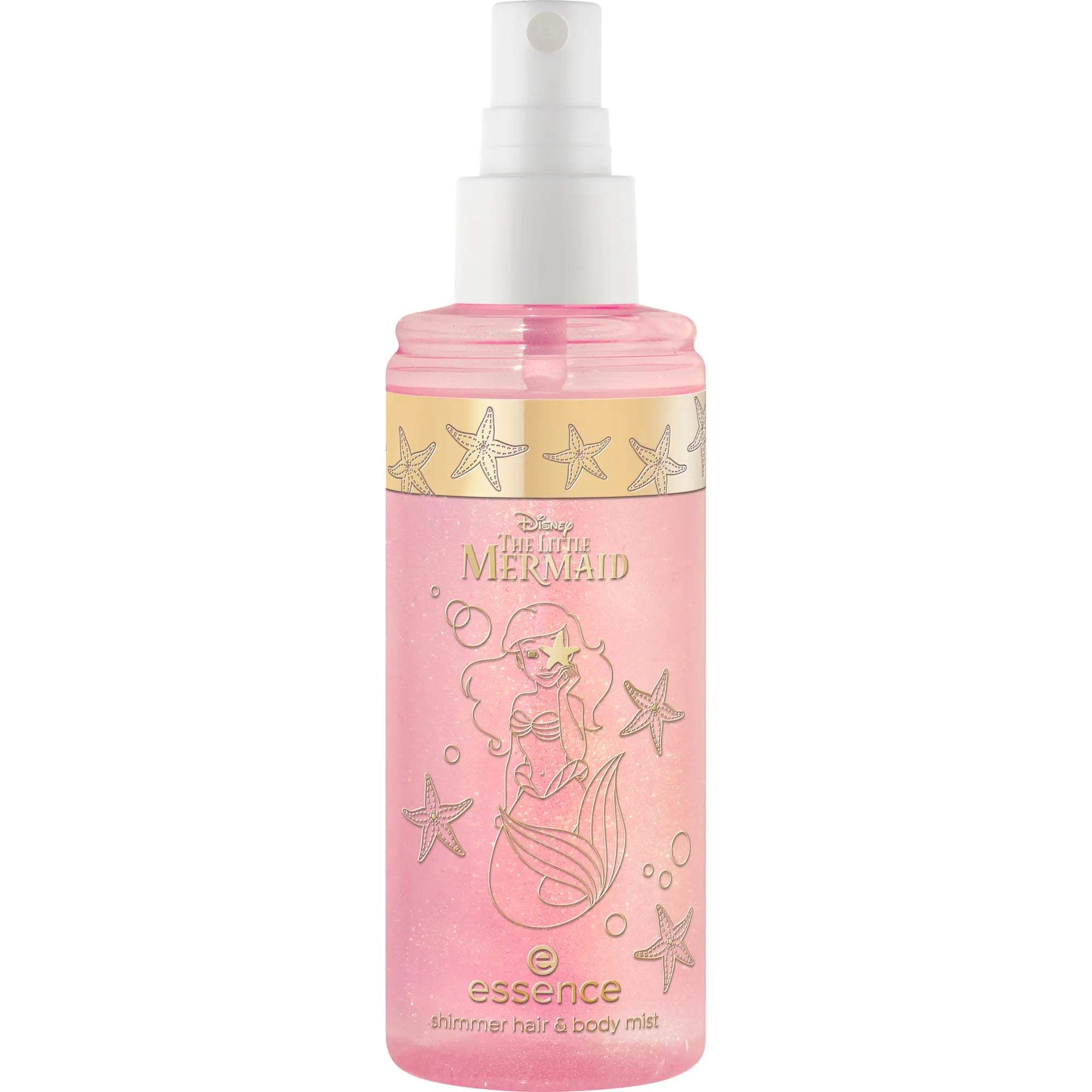 The Essence X Disney The Little Mermaid Shimmer Hair & Body Mist My Moment To Shine lets you glow with a subtle sparkling finish. This lightweight mist refreshes both your hair and skin while leaving a soft shimmering glow.