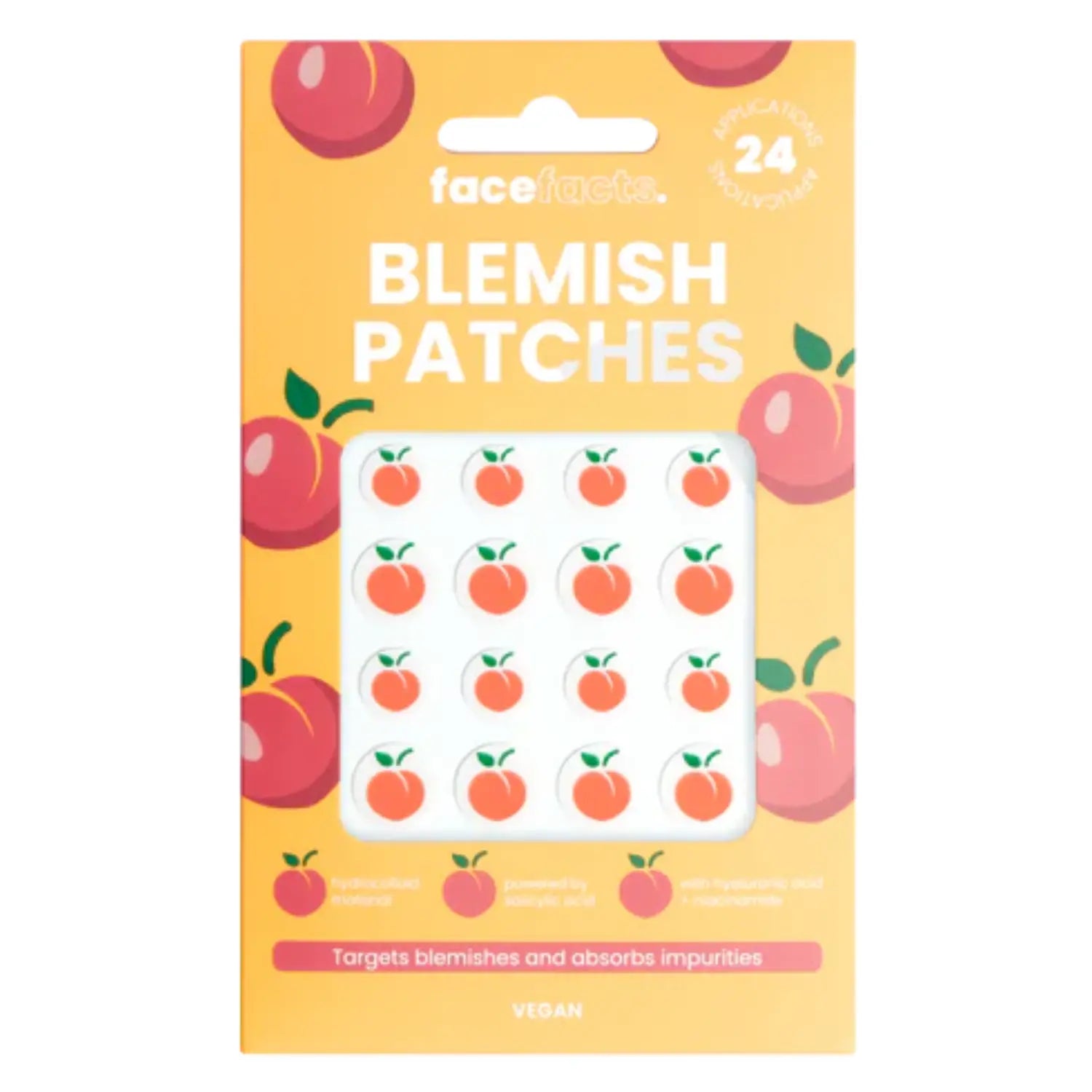 The Face Facts Blemish Patches Peaches are your quick and effective solution for blemishes. These cute peach patches are made from hydrocolloid material that helps absorb impurities and protects your skin from dirt and external bacteria. With a powerful blend of salicylic acid, niacinamide, and hyaluronic acid, they target pimples directly, soothe the skin, and support the recovery of the skin barrier.