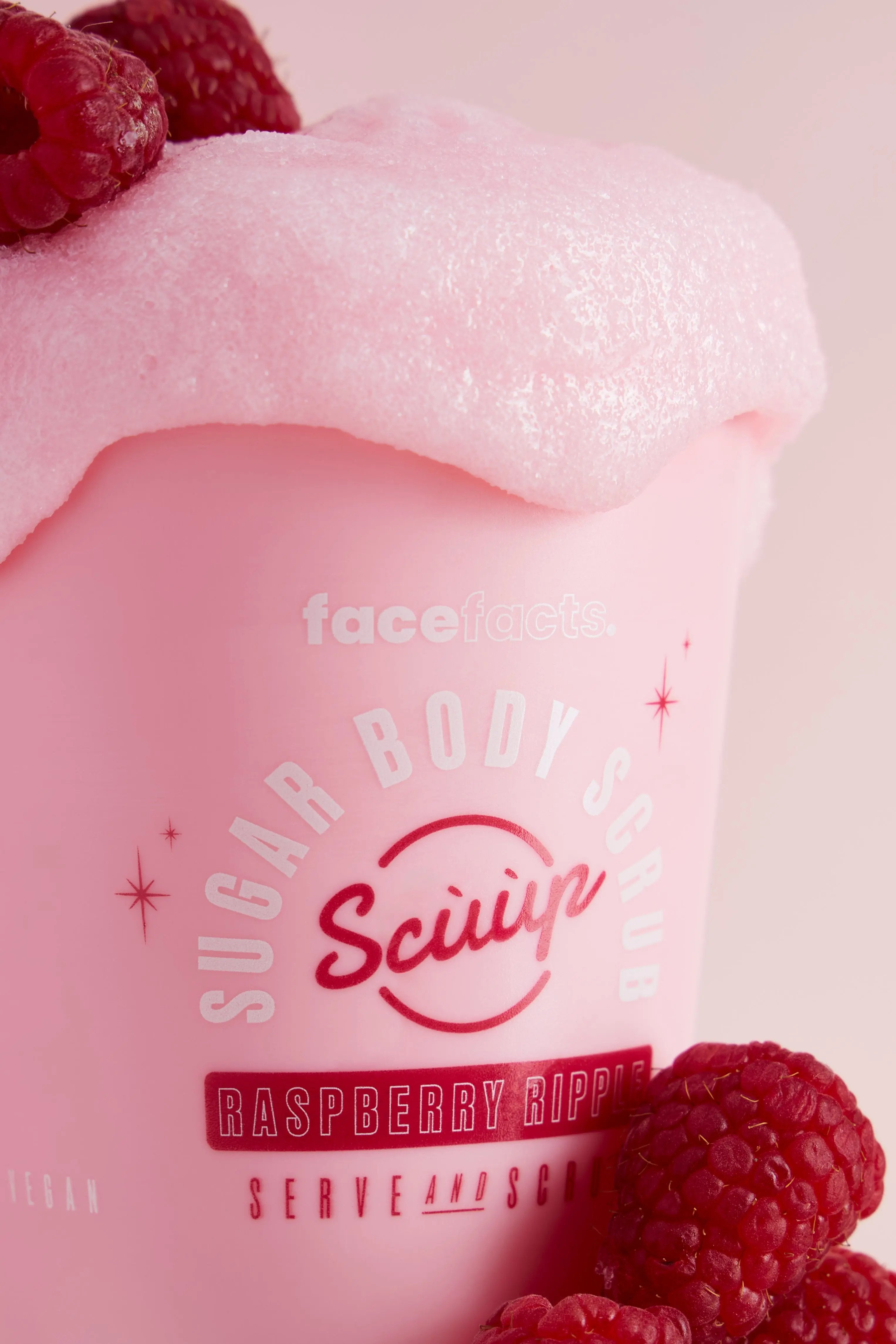 The Face Facts Scuup Sugar Body Scrub Raspberry Ripple is a sweet dream for your skin. This decadent scrub with a sorbet-like texture gently removes dead skin cells and reveals skin that’s super soft, smooth, and glowing. With nourishing shea butter, hydrating coconut oil, and refreshing peach extract, your skin feels not just clean, but also nourished and beautifully supple.