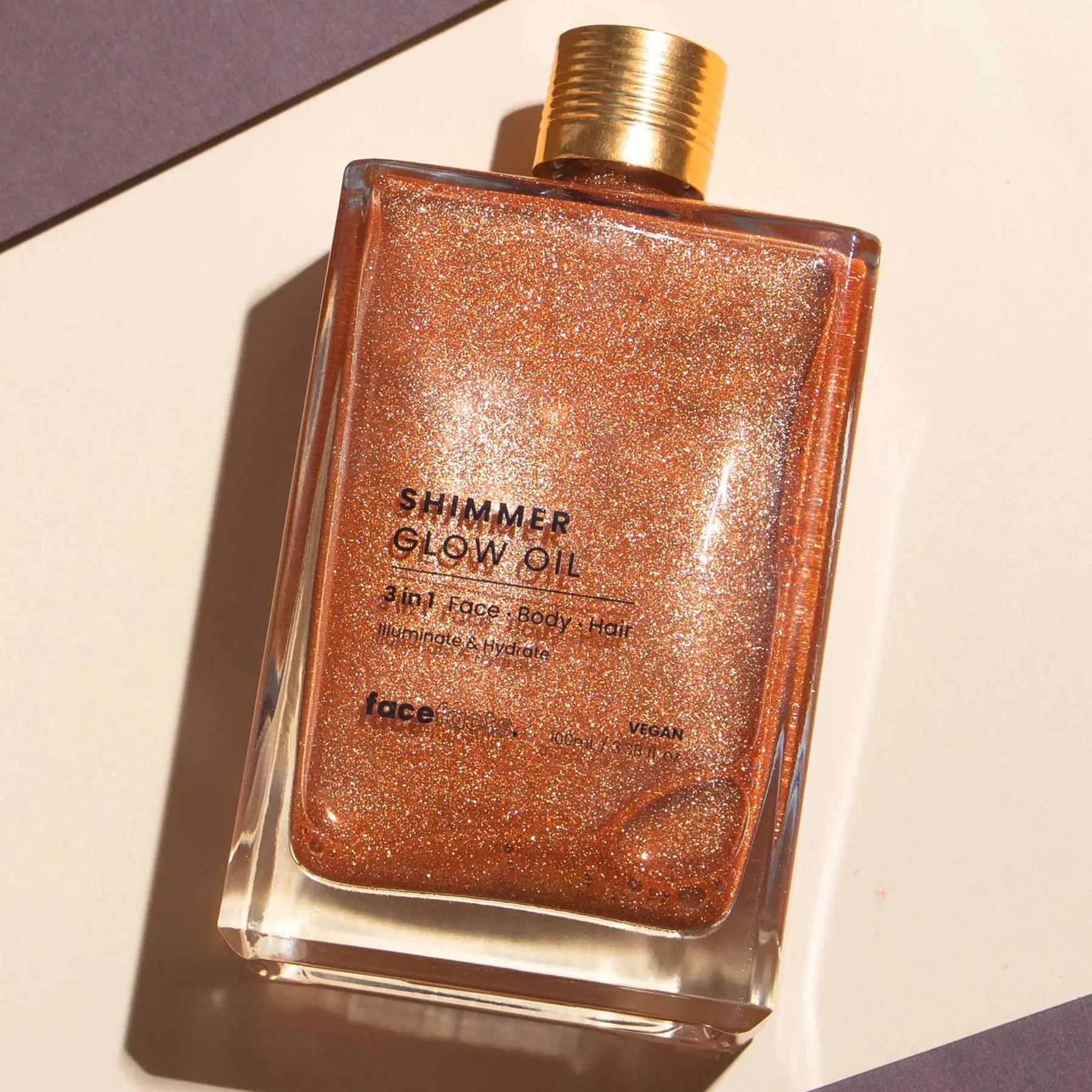 The Face Facts Shimmer Glow Oil is your secret weapon for the ultimate sun-kissed glow! This 3-in-1 shimmer oil is perfect for skin and hair and is packed with nourishing oils like hazelnut, sweet almond, and macadamia. The ultra-fine shimmer particles give you a subtle, radiant finish – like you just stepped off the beach, every single day!
