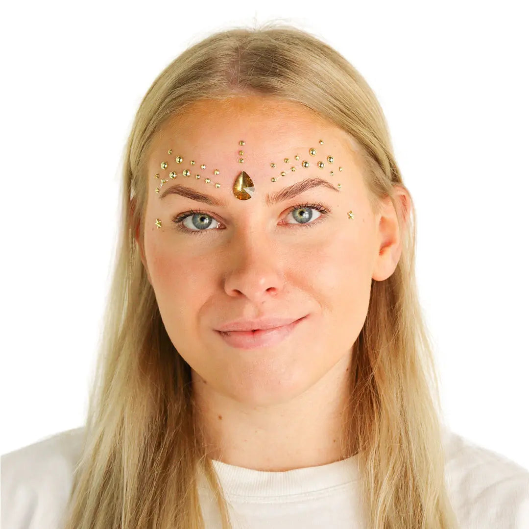 The self-adhesive design of these face jewels is a true game changer. Unlike traditional methods where you have to use glue to apply the stones, these jewels have a self-adhesive layer. You simply remove the protective layer on the back of the jewels, place them in the desired location and press them firmly. It's that simple!