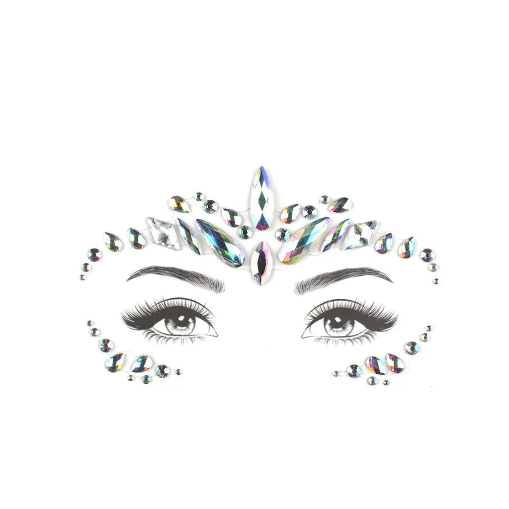 The self-adhesive design of these face jewels is a true game changer. Unlike traditional methods where you have to use glue to apply the stones, these jewels have a self-adhesive layer. You simply remove the protective layer on the back of the jewels, place them in the desired location and press them firmly. It's that simple!