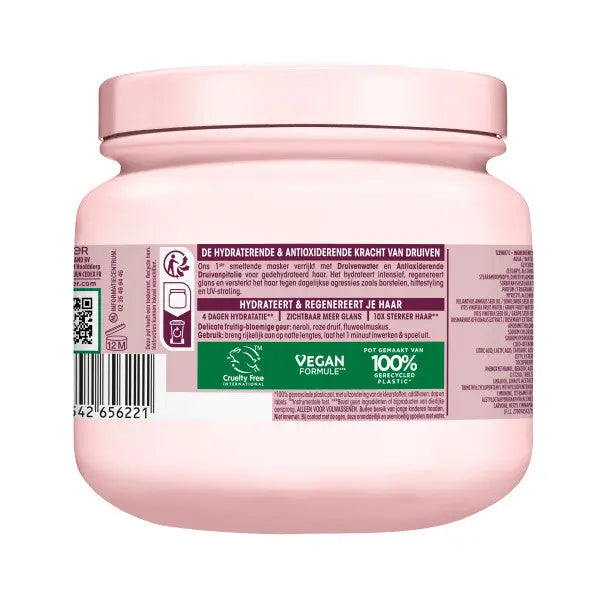 The Garnier Loving Blends Grape Moisture Mask is your must-have for deeply hydrated and radiant hair. This creamy hair mask is enriched with grape water and antioxidants from grape seed oil, delivering a true moisture boost for dry and dull hair. The formula intensely hydrates, regenerates the hair fiber, and protects your strands from daily external stressors such as heat, pollution, and UV rays.