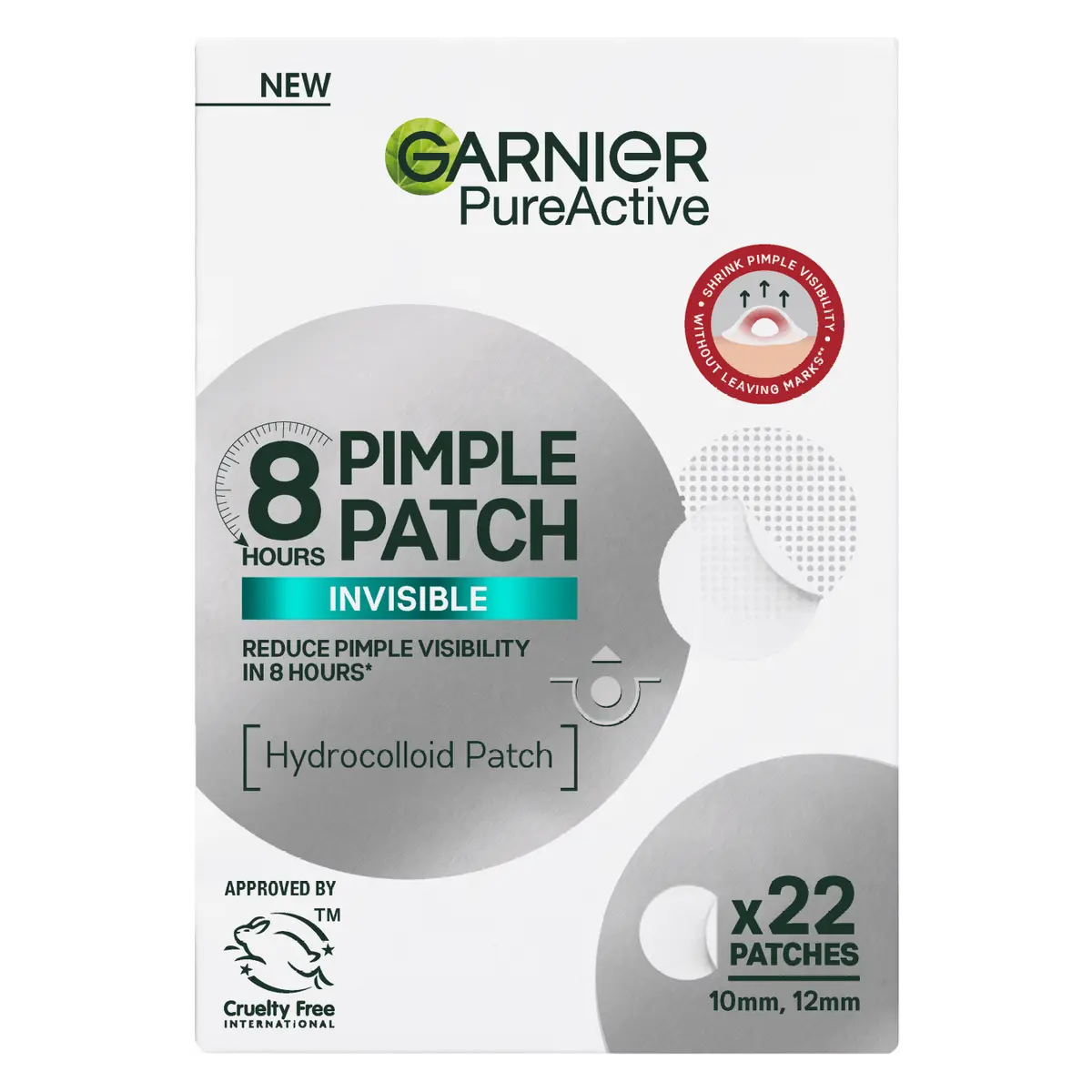 The Garnier Skincare PureActive Pimple Patch is the quick and effective solution to visibly reduce pimples in just 8 hours! This ultra-thin, transparent hydrocolloid patch absorbs moisture and impurities while creating a protective barrier to prevent picking and scarring.