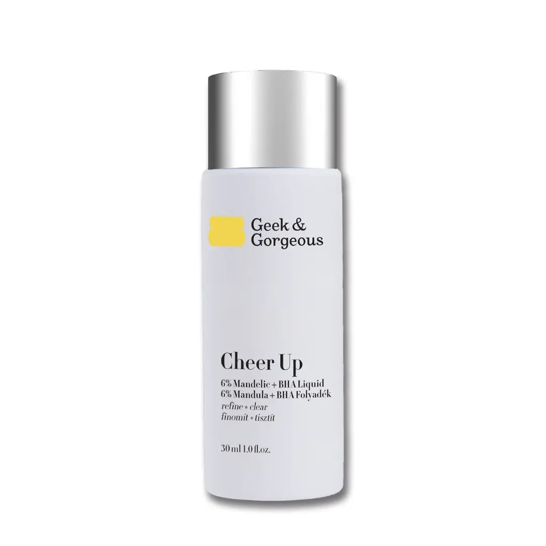The Geek & Gorgeous Cheer Up 6% Mandelic + BHA Liquid Exfoliant 30 ml is a liquid exfoliant designed for combination skin. It removes dead skin cells and visibly reduces large pores. This exfoliant is suitable for all skin types – struggling with acne, large pores, or blackheads? Then this is the perfect exfoliant for you!