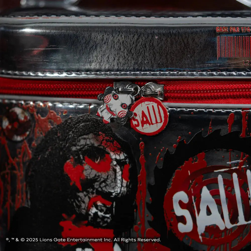 Inside you’ll find practical compartments to store your tools and essentials. The zippers are custom designed with a saw blade and Billy’s face adding the kind of detail that makes this bag truly unique. Whether you’re a SAW collector or just love spooky vibes this makeup bag is a killer addition to your collection.