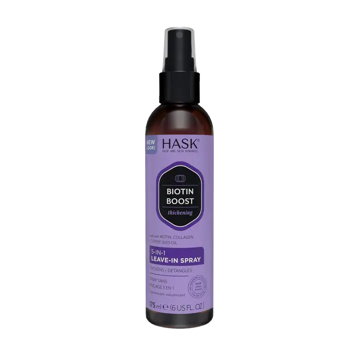 The Hask Biotin 5-in-1 Leave-In Spray is your ultimate multitasker for fine and thin hair! This versatile spray offers five benefits in one: it hydrates, detangles, protects against heat, adds volume, and prevents breakage. Enriched with biotin, collagen, and coffee extract, this spray helps your hair appear fuller and thicker while taming frizz and adding a beautiful shine.