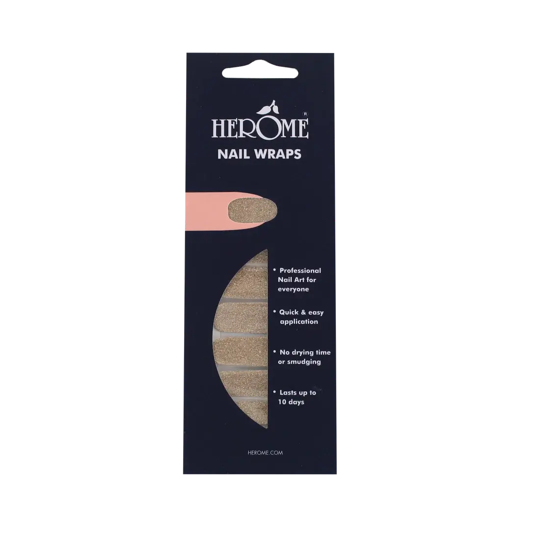 The Herôme Nail Wraps Golden Glitter are your go-to for instant glamour! With sparkling golden glitter, you can give your nails a high-shine party look in just minutes, no drying time or UV lamp required. Perfect for parties, festivals, or anytime you’re in the mood for some extra sparkle.