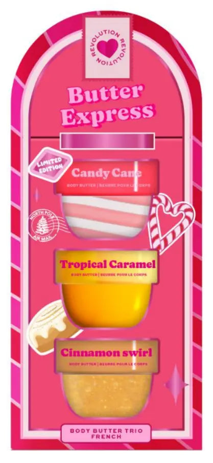 The I Heart Revolution Butter Express Body Butter Trio is your ticket to soft, nourished, and beautifully scented winter skin! These three mini body butters in irresistible scents are perfect for pampering yourself (or someone else). Whether you’re into spicy, sweet, or tropical, this trio will leave your skin glowing.