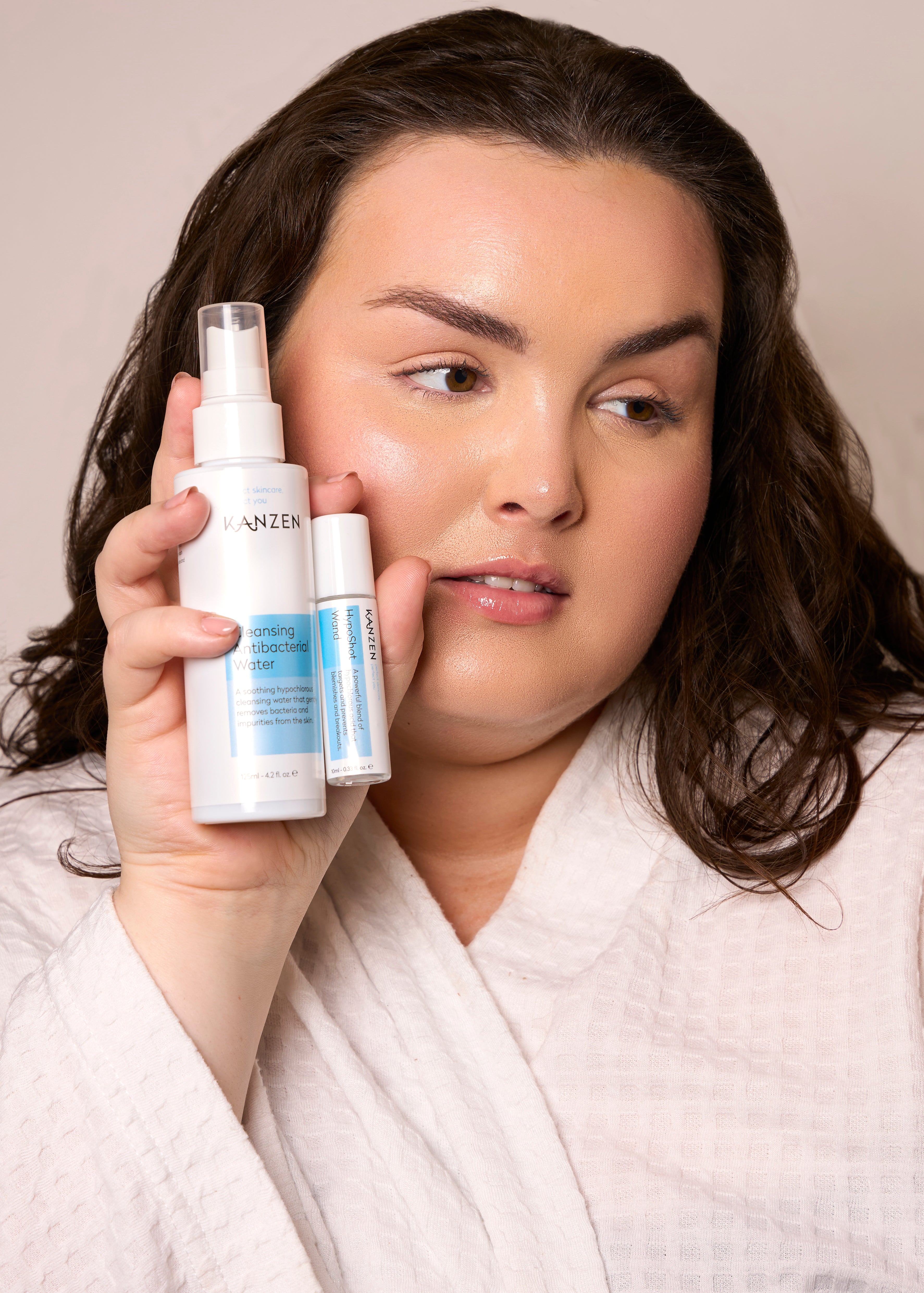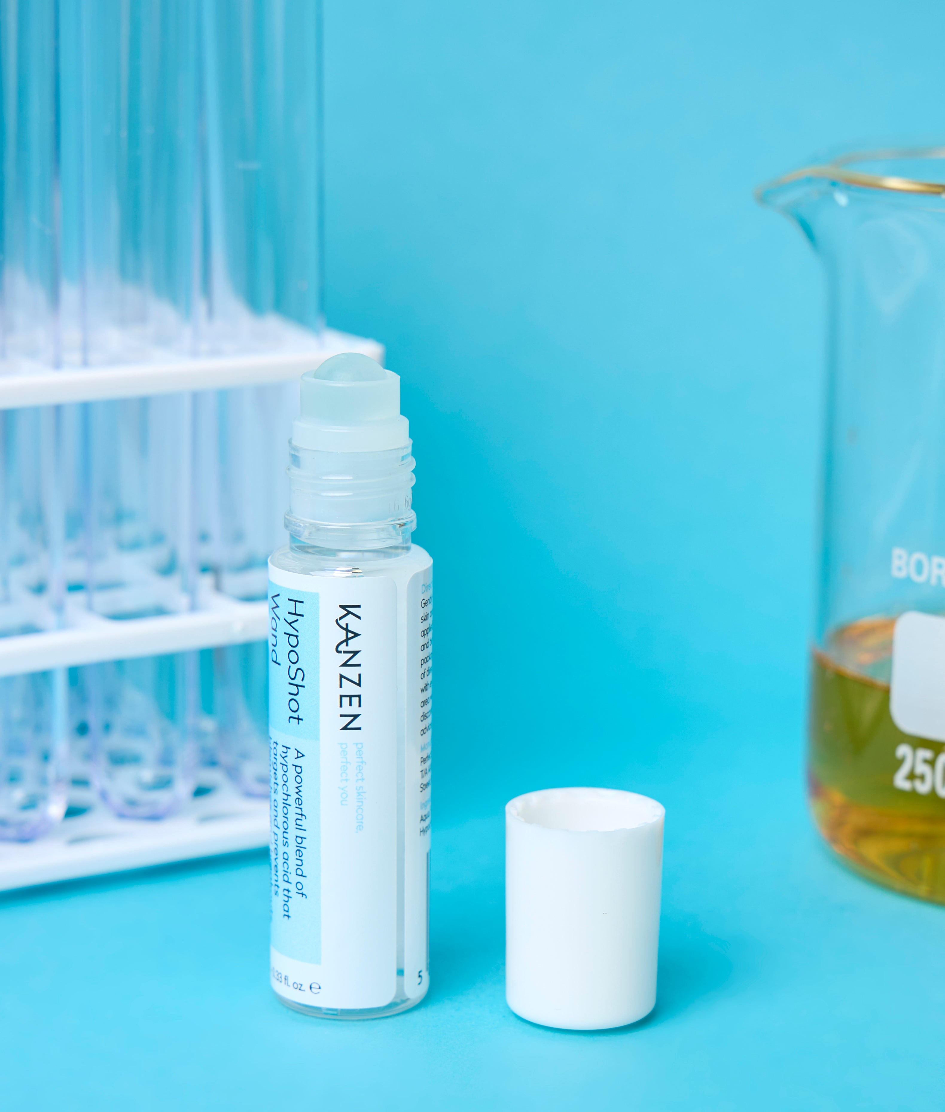 The Kanzen HypoShot Wand is your secret weapon for targeted skincare. This compact 10 ml roller contains 0.03% hypochlorous acid, the highest concentration available in cosmetic formulas, known for its ability to fight bacteria, calm inflammation, and refresh the skin without irritation. Ideal for sensitive skin and perfect for targeting blemishes directly.