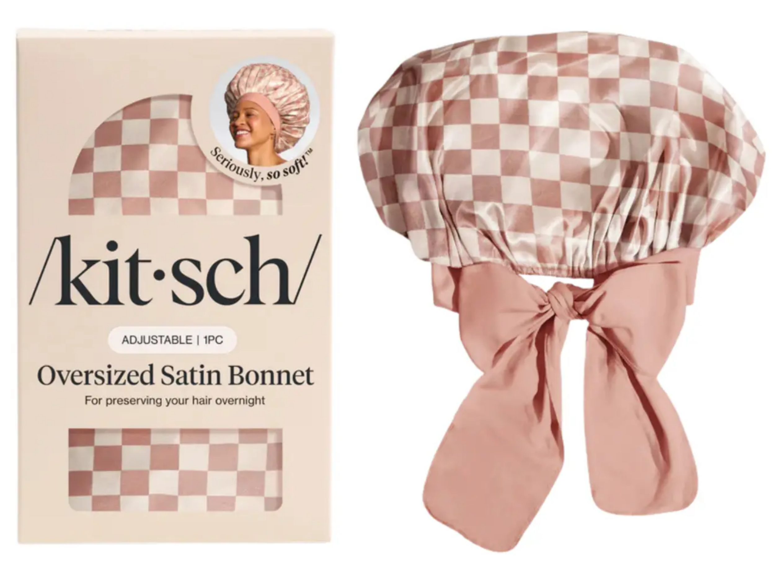 The Kitsch Adjustable Oversized Satin Bonnet Terracotta Checker is the ultimate beauty sleep essential your hair truly deserves! This stylish, oversized bonnet is made from high-quality double-layer satin and protects your locks while you sleep. Whether you’re wearing your Kitsch Heatless Curlers or rocking full 4C curls: this bonnet keeps your style in place.