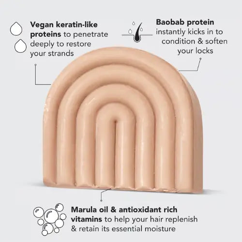The formula is enriched with vegan keratin-like protein, which helps seal the hair cuticle and repair damage. In addition, Marula oil deeply nourishes your hair and retains moisture to prevent dehydration. Last but not least, the addition of Baobab Protein provides immediate care for the hair with a soft result.