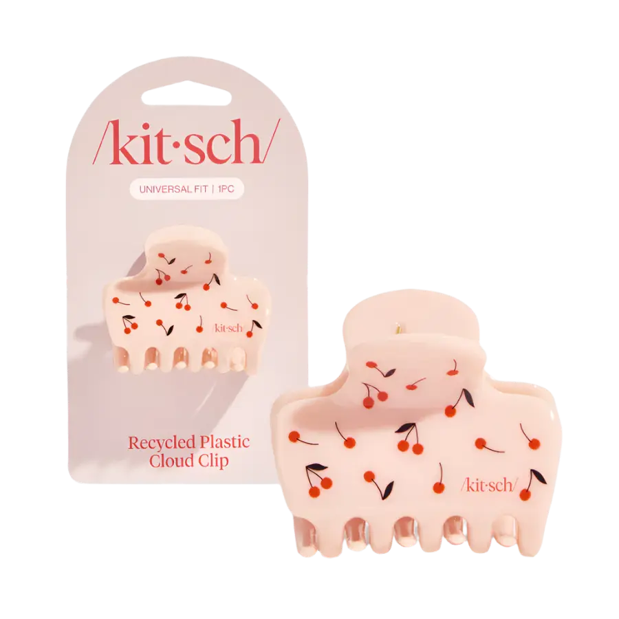 The Kitsch Recycled Plastic Medium Cloud Clip Cherry Print is the hair clip you’ll want to wear every day! With its cute cherry print and airy cloud design, it adds a playful and stylish touch to your look in seconds. Whether you’re going for a casual half-updo or a full updo, this clip keeps your hair perfectly in place without pulling or tugging.