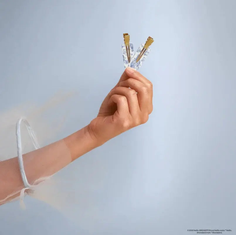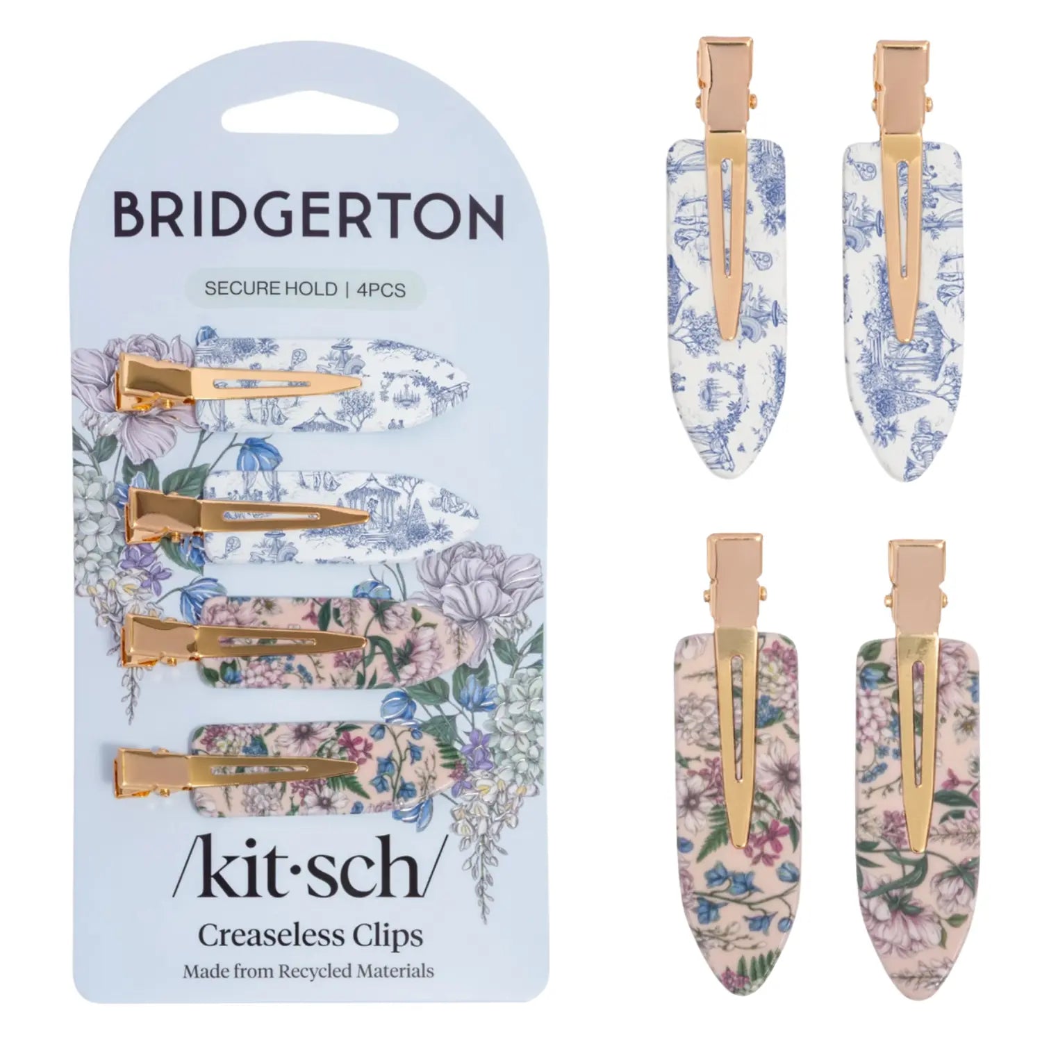 The Kitsch x Bridgerton Creaseless Clips Toile In Bloom are the ultimate must-haves for your beauty routine. These elegant clips effortlessly keep strands, bangs, and shorter layers out of your face while applying makeup or skincare: without creases or hair damage. Thanks to the beautiful toile and wisteria prints, you instantly add a stylish touch to your look, even while getting ready.