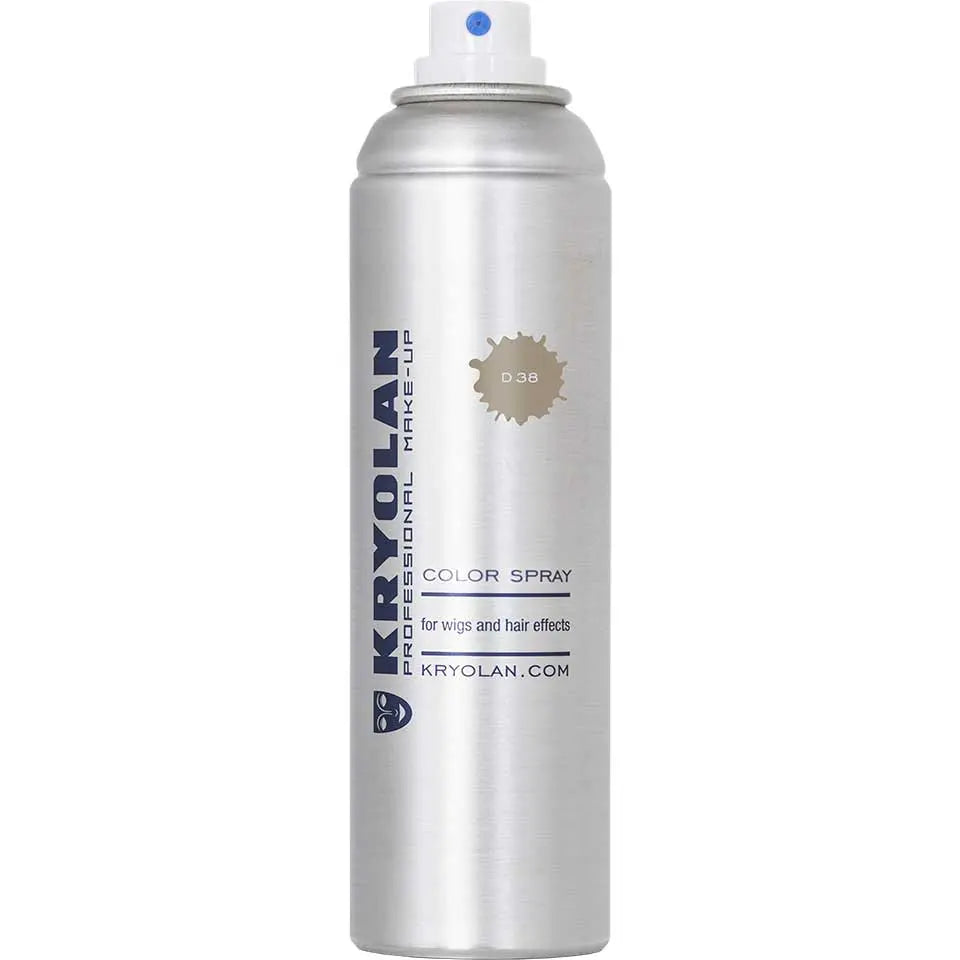 The Kryolan Professional Make-up Color Spray D38 Taupe/Character Grey is the perfect choice for hair effects and wigs. This excellent covering spray is ideal for both subtle, natural effects and striking, colorful creations. Whether you are preparing for a party, cosplay or professional production, this spray offers endless possibilities.