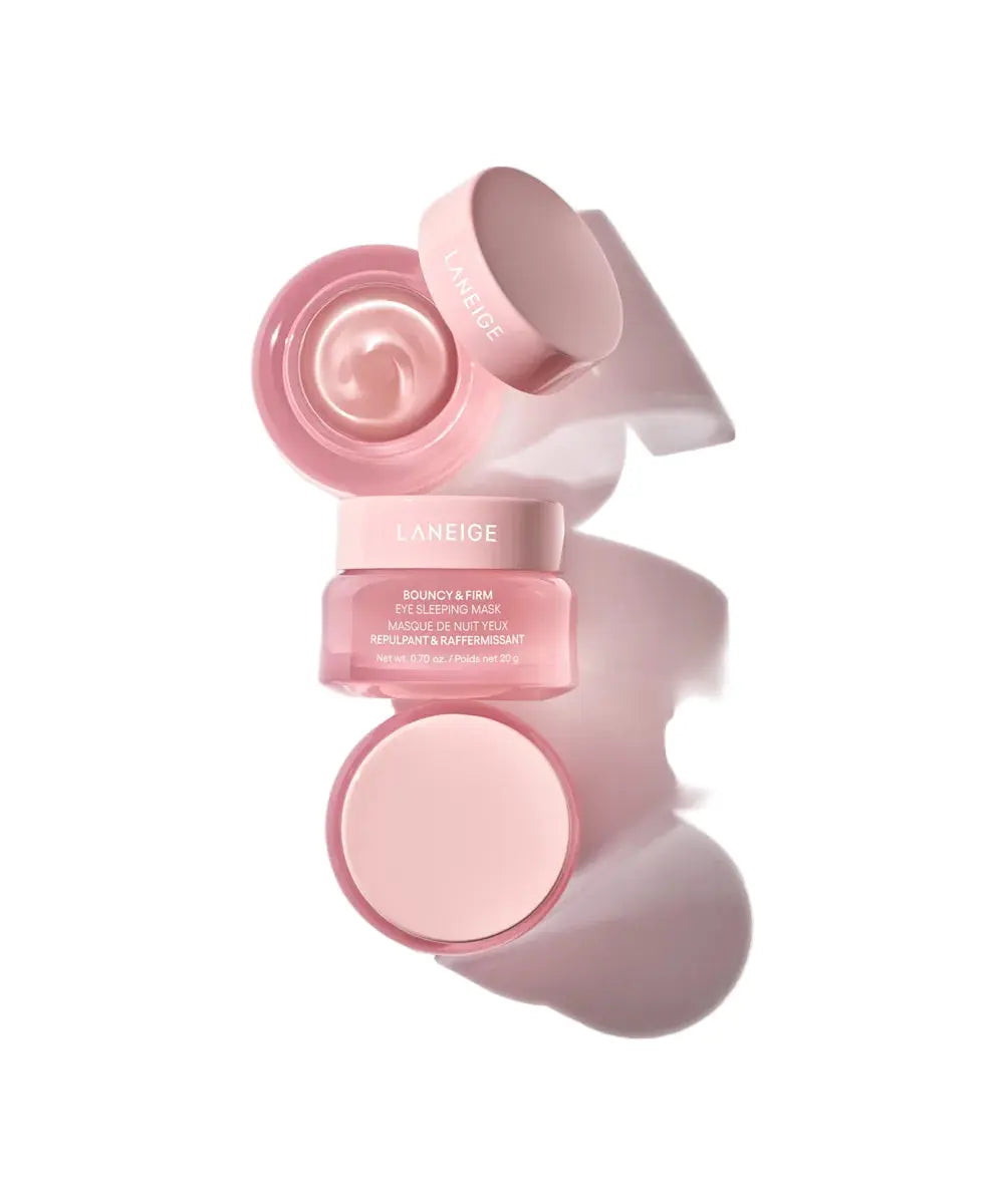 The Laneige Bouncy & Firm Eye Sleeping Mask is your secret weapon for a fresh, well-rested look in the morning. This overnight mask, specially formulated for the delicate skin around your eyes, is packed with hydrating and firming ingredients like the Peony & Collagen Complex™, peptides, niacinamide, and caffeine. While you sleep, this watery gel formula works intensively to soften dryness lines, firm the skin, and tackle puffiness and dark circles.