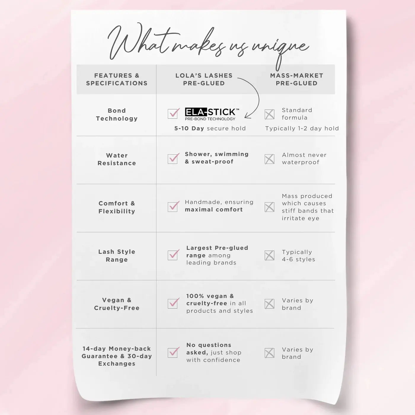 Thanks to the revolutionary Ela-stick™ technology, these lashes stay in place for up to 5 days. Yes, really: waterproof, showerproof and windproof. So whether you're braving the rain or dancing at a festival, your lashes stay flawless. No glue needed, they're pre-glued. It doesn’t get easier than this! Plus: they’re 100% vegan and cruelty free.