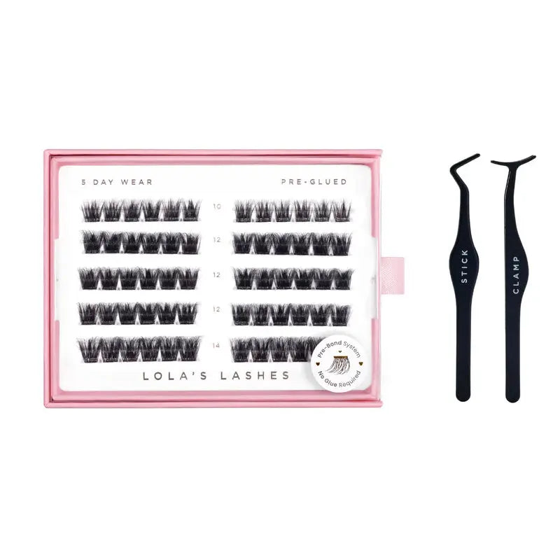The Lola's Lashes Wispy Volume Pre-Glued Lashes Set gives you the soft drama you dream of, without the hassle of glue. These natural yet noticeable lashes have a layered, fluttery effect that beautifully enhances your eyes. Ideal for those who love subtle volume and a lightweight finish, perfect for everyday wear and special occasions.