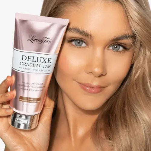 Loving Tan Deluxe Gradual Tan is a lightweight lotion that gives your skin a beautiful complexion! This lotion contains enriching ingredients such as Acai berries, shea butter and coffee extracts which care for your skin while a natural complexion develops. This renewed tanning lotion is buildable and suitable for daily use!