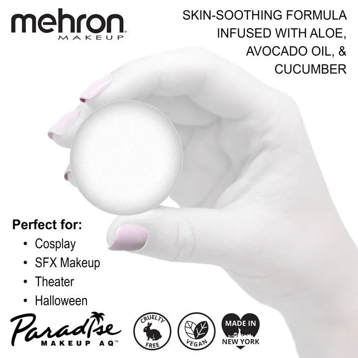 The Mehron Makeup Paradise Makeup AQ White is the water-activated face & body paint for anyone who loves intense pigment and creative freedom. This iconic white shade is bold, bright and perfect for Halloween, carnival, cosplay, SFX looks or theatre performances. The creamy formula applies easily and dries without cracking. Just a little water brings this color to life effortlessly.