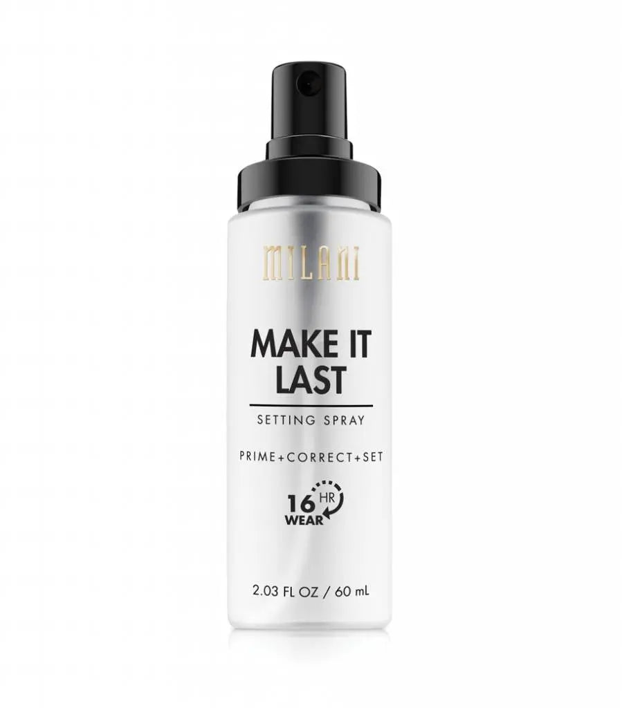 The Milani Make it Last Setting Spray keeps your perfect look perfect for a whole day without touchups! This setting spray can also be used as a primer, correcting minor imperfections and fixing your look for up to 16 hours without creasing, smudging, fading or shine.